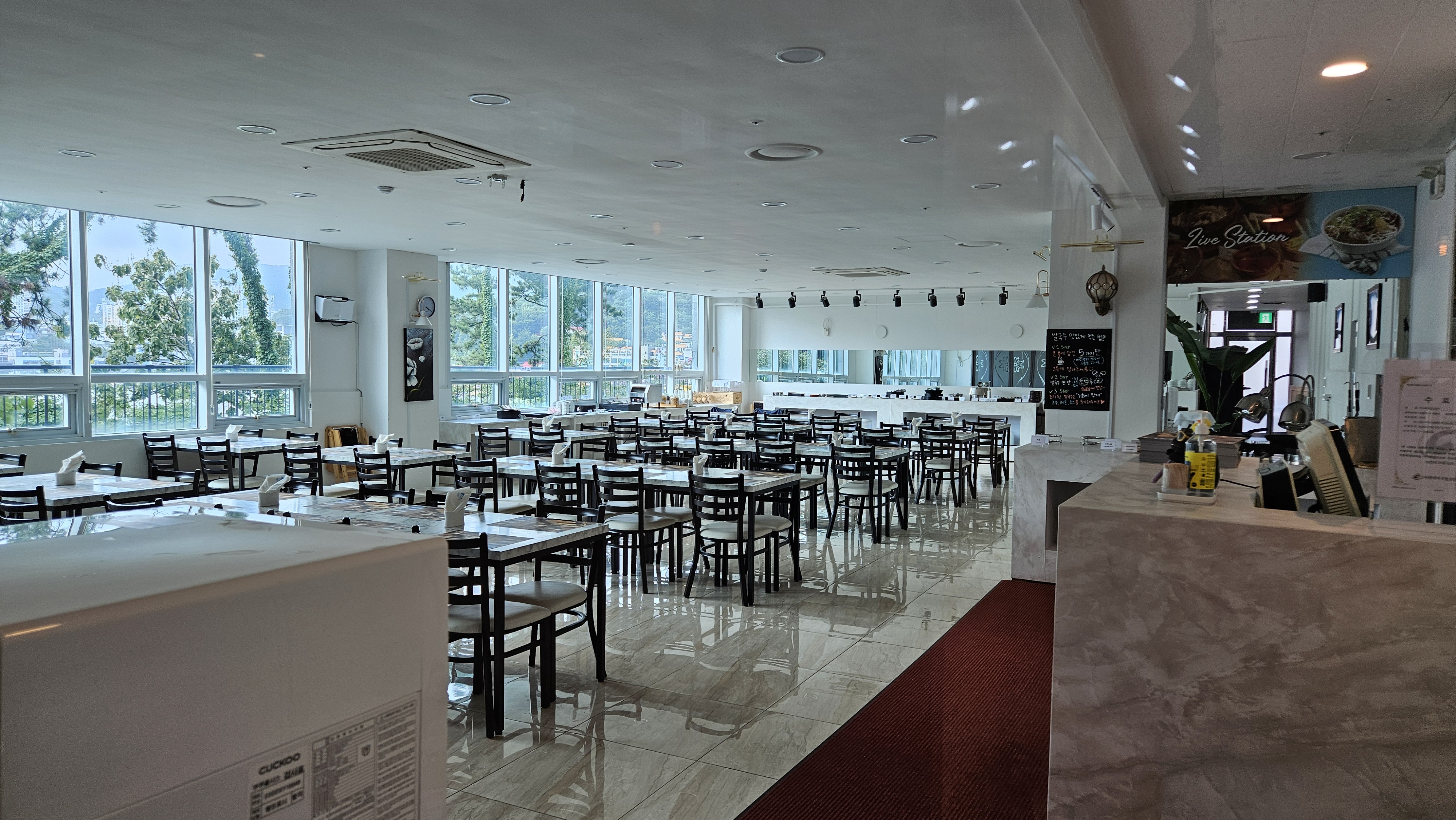 1층은 프런트데스크와 한식당과 카페, 다기야 치킨, 세미나룸 등이 있고,