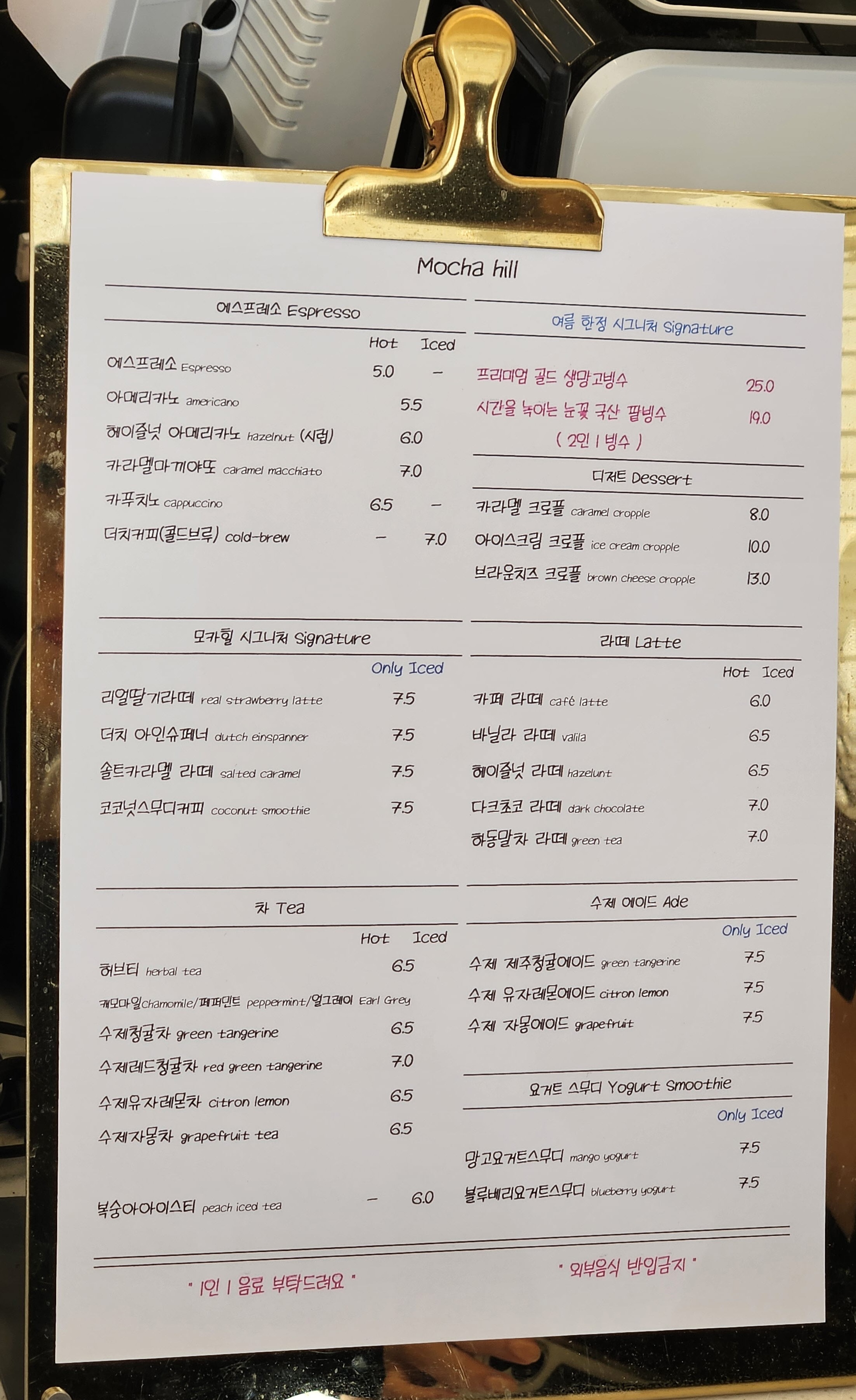 기타 크로플(8,000~13,000)과 라떼, 모키힐 시그니처 라때 등이 있습니다.