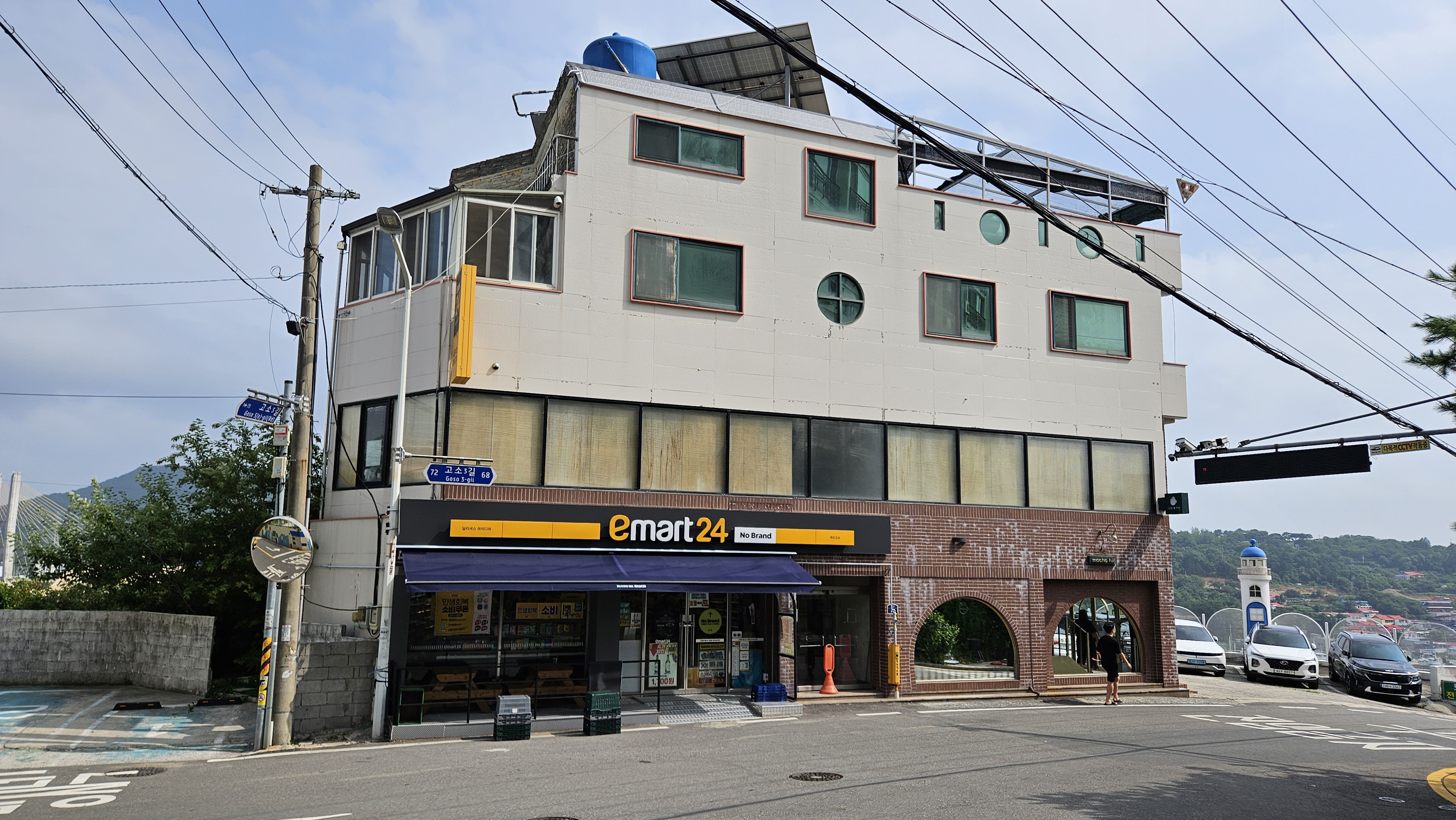 1층엔 이마트 24 편의점이 있고, 그 옆에 카페가 2층까지 사용하고 있습니다.