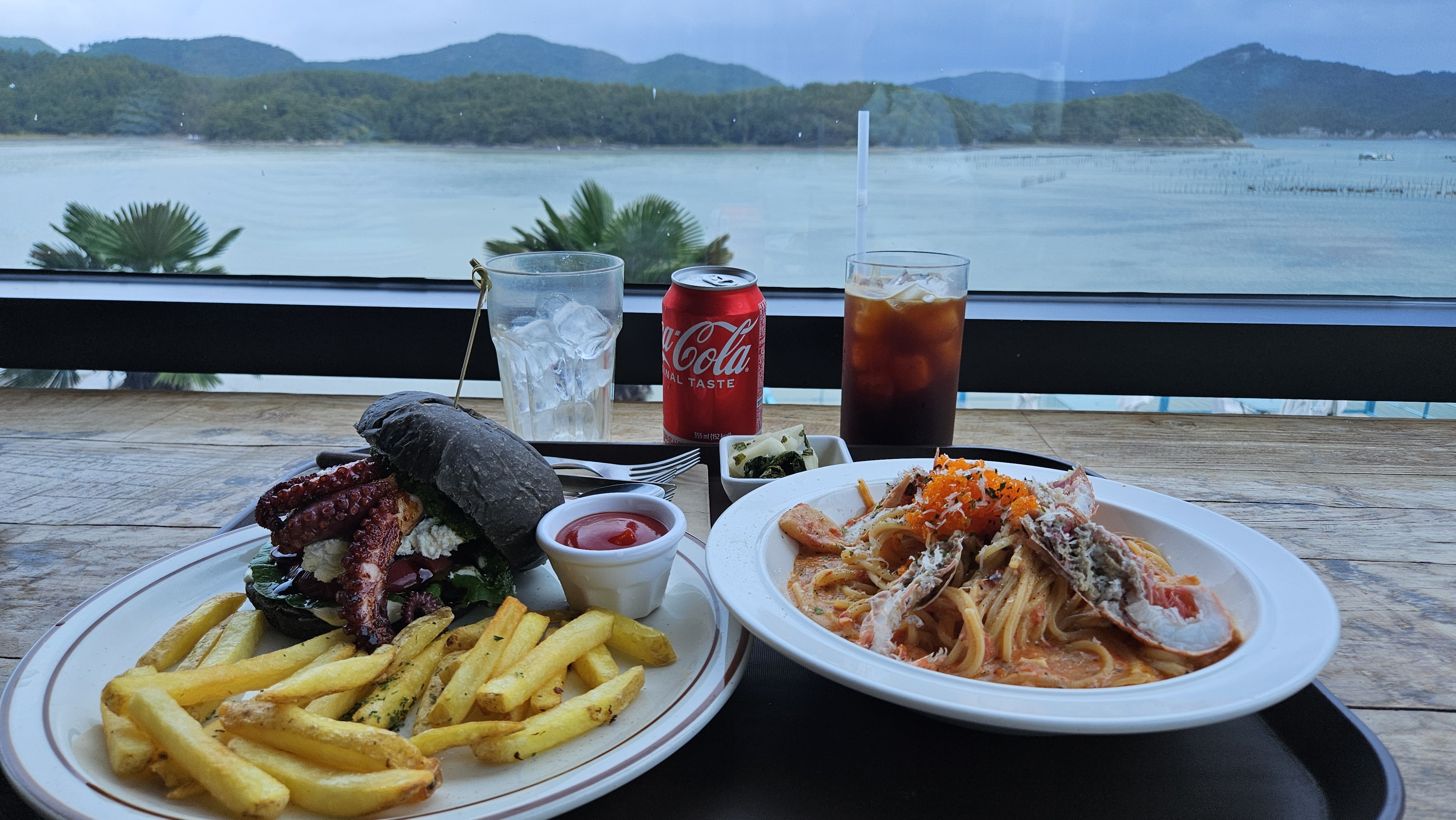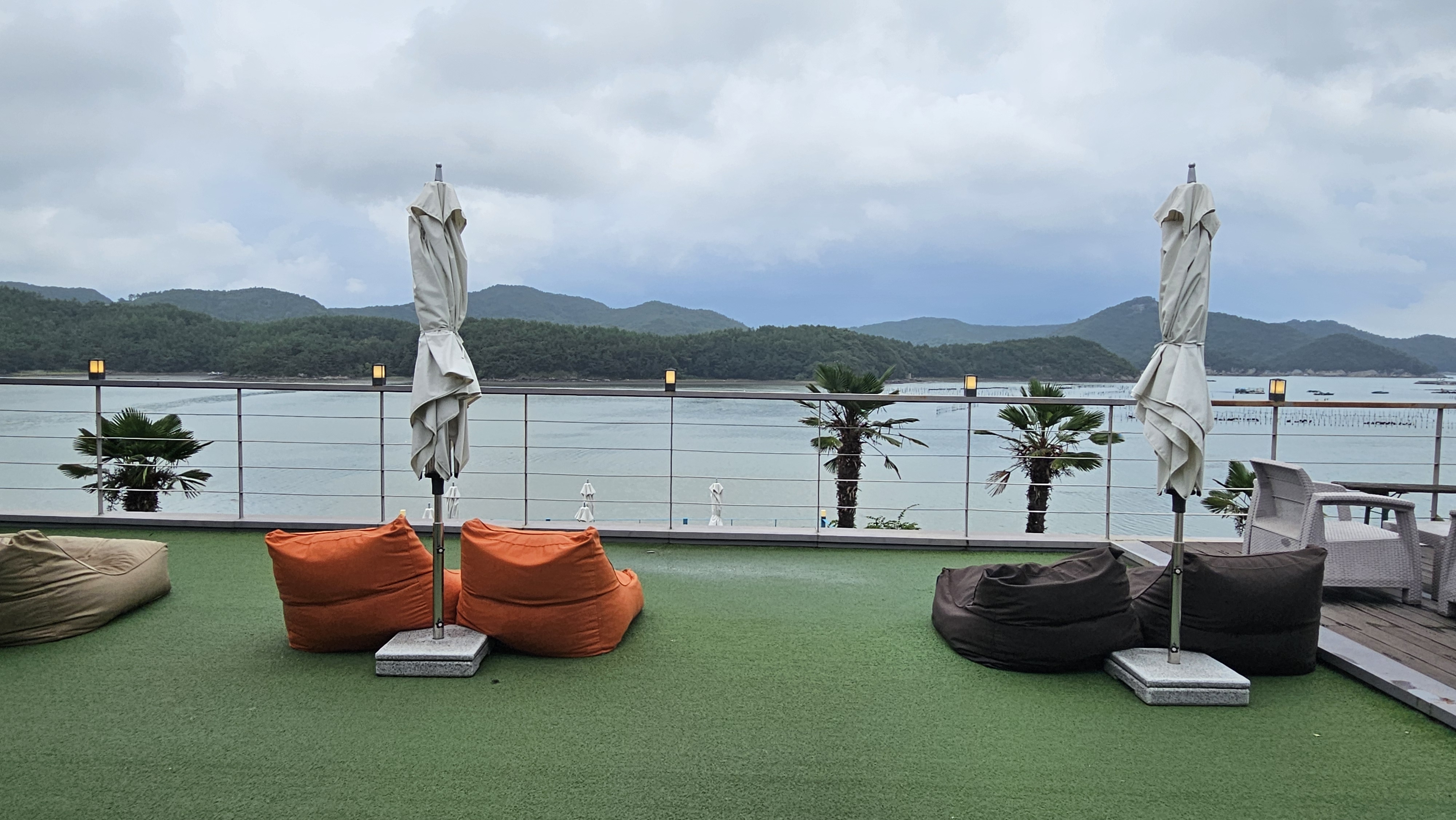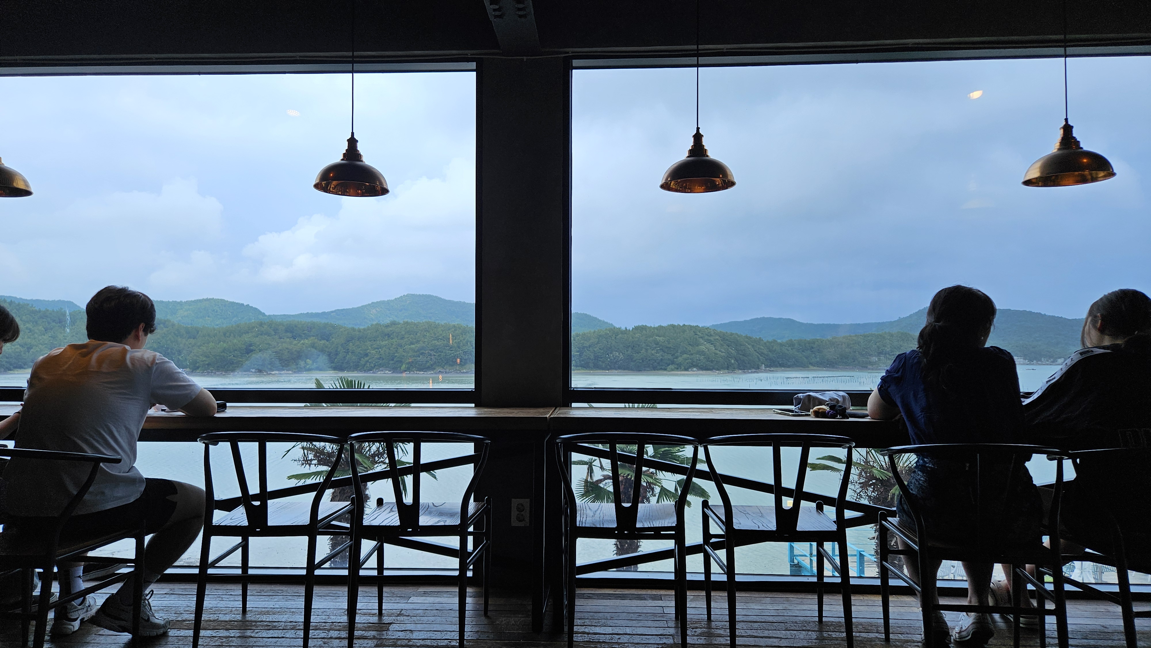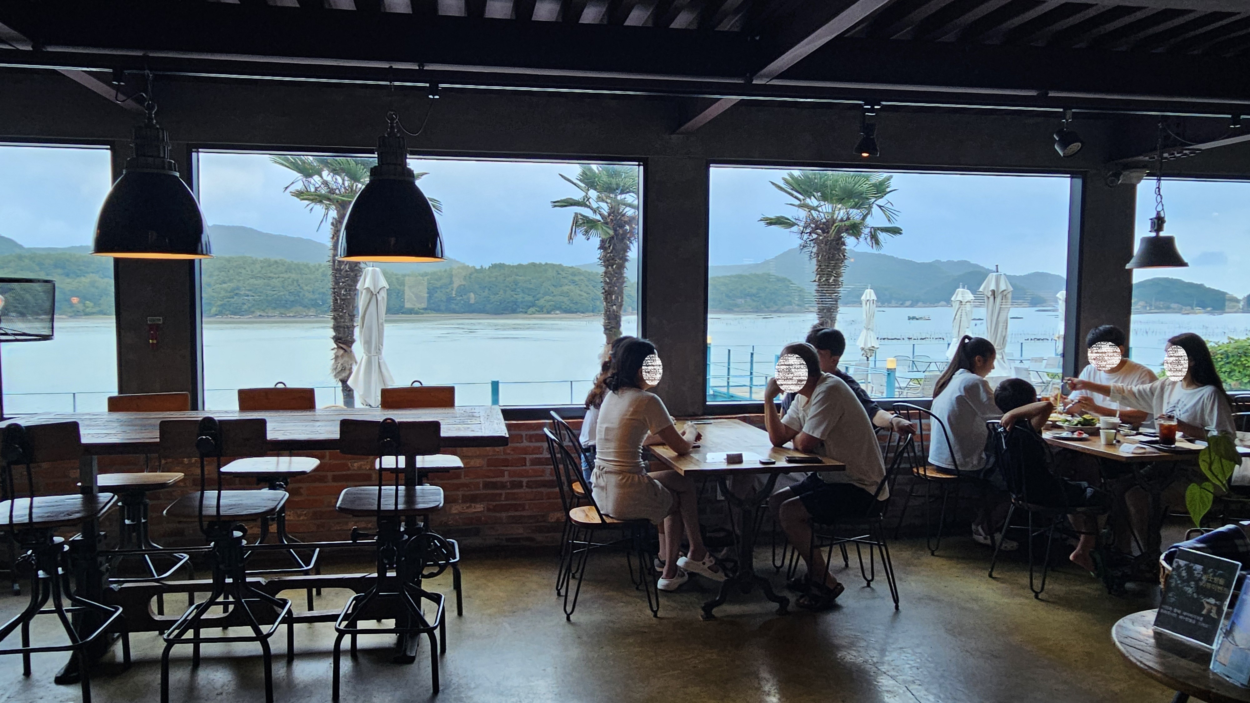 주문 후 바다 전망이 좋을 것 같아 2층으로 올라왔습니다.