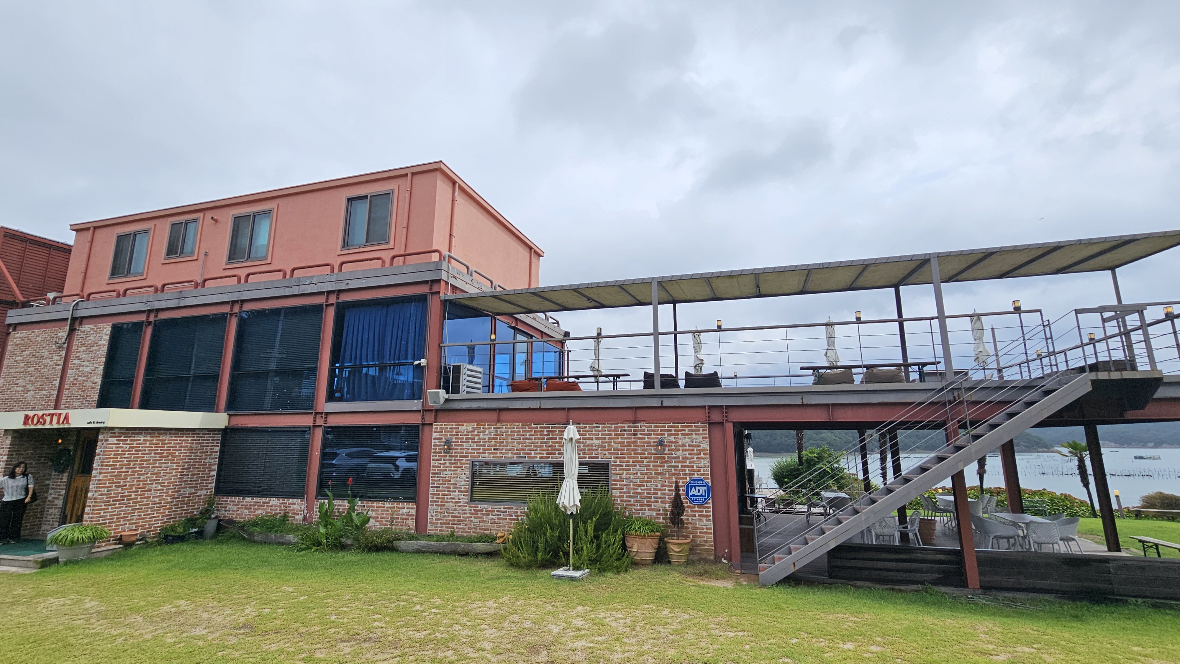 카페 로스티아는 돌산도 머리를 지나 목에 해당하는 곳 해안가를 바라보고 있는 카페입니다.