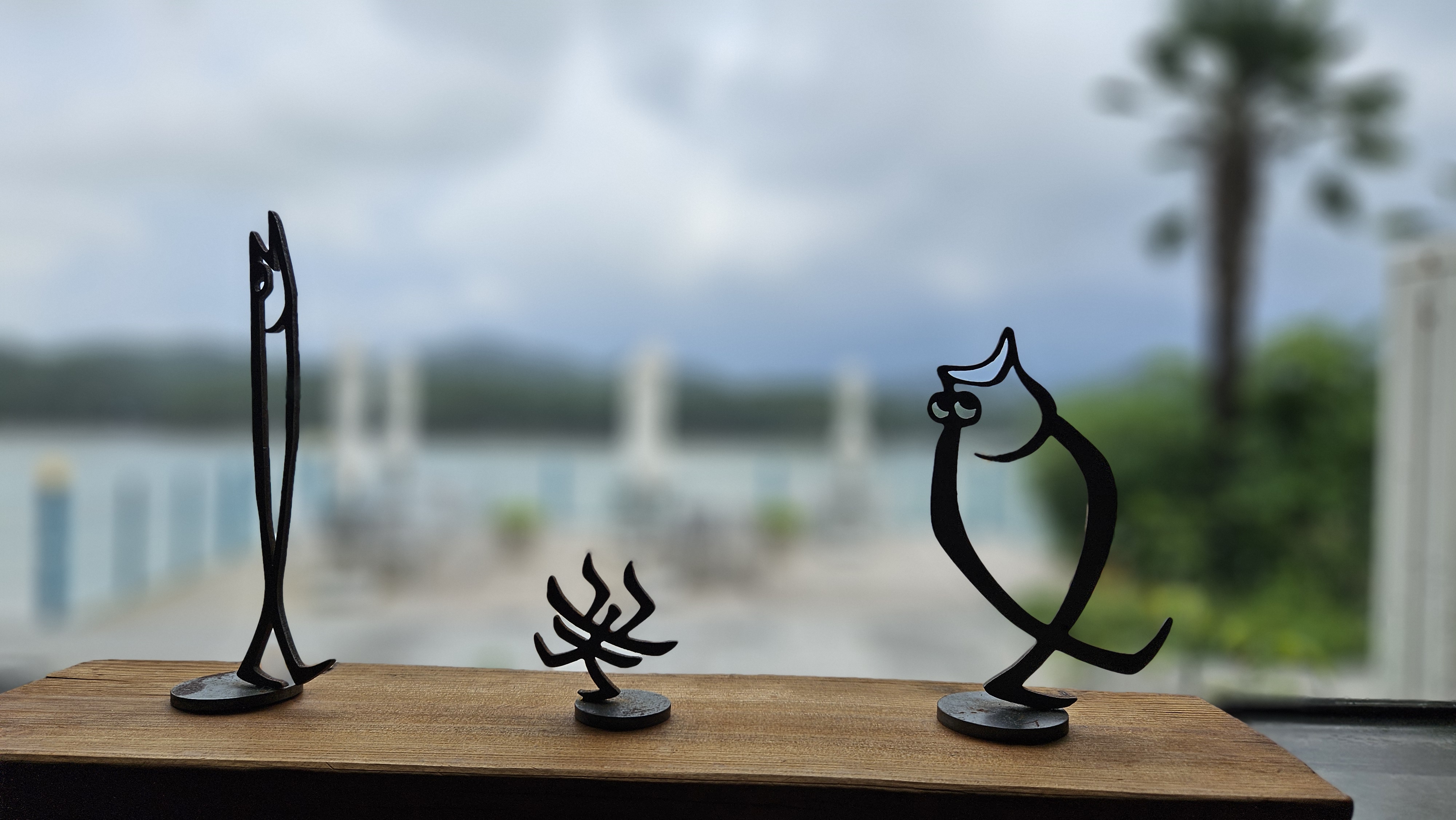 야자수 너머 보이는 바다 풍경이 아름다운 카페입니다.