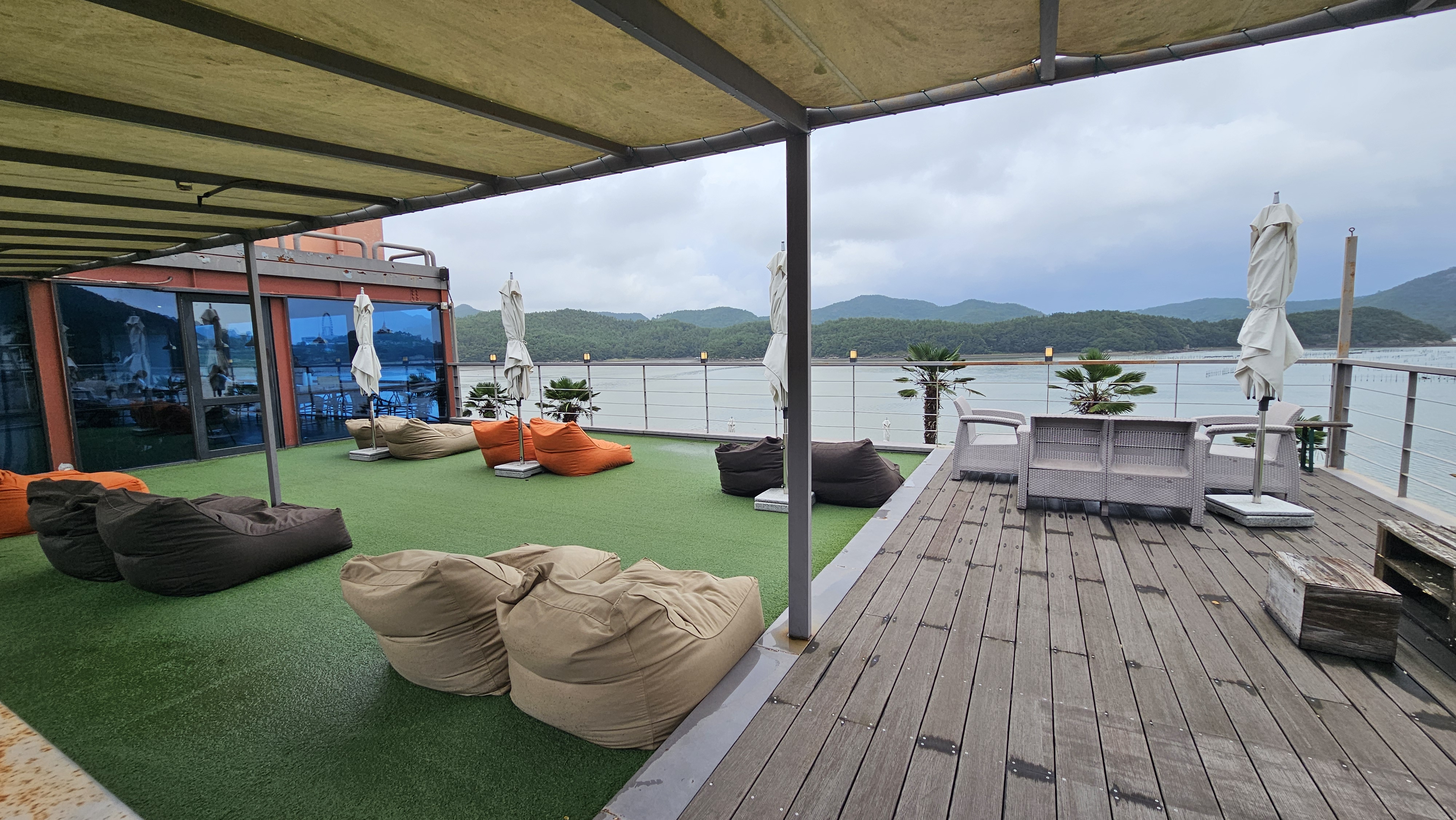 뿐만 아니라 바다가 보이는 방향으로 야외 테이블도 있습니다.