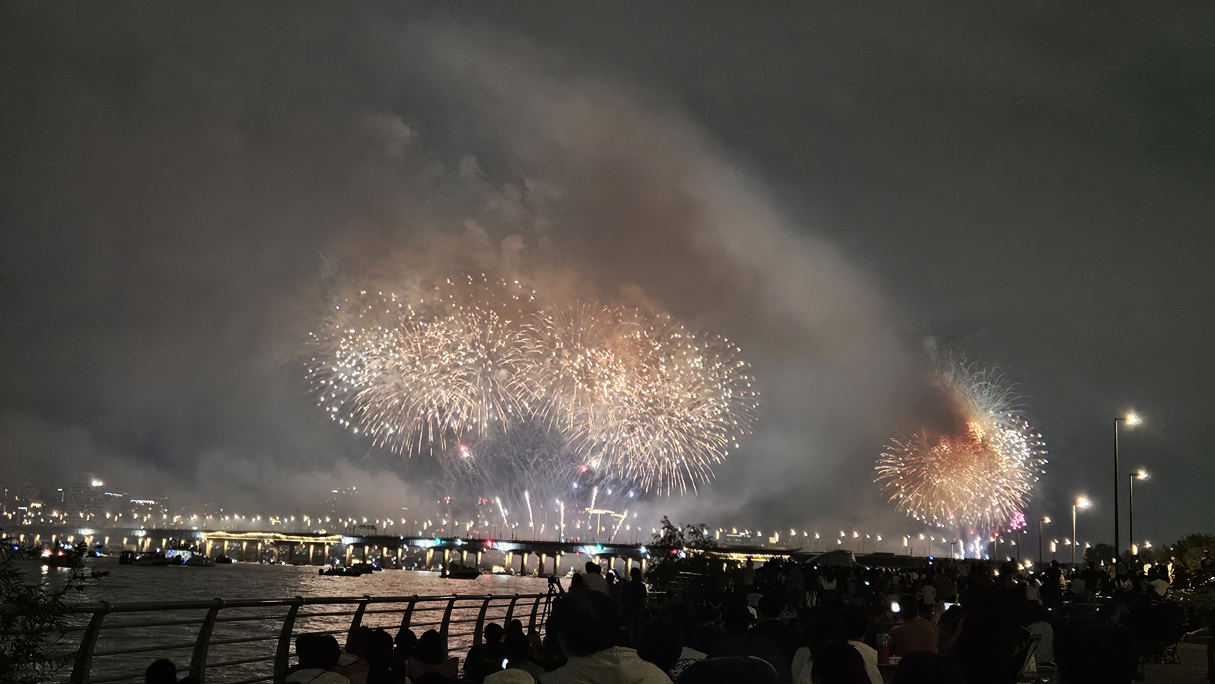 불꽃놀이가 이어지면서 한강 일대는 온통 연기로 가득 찼네요.