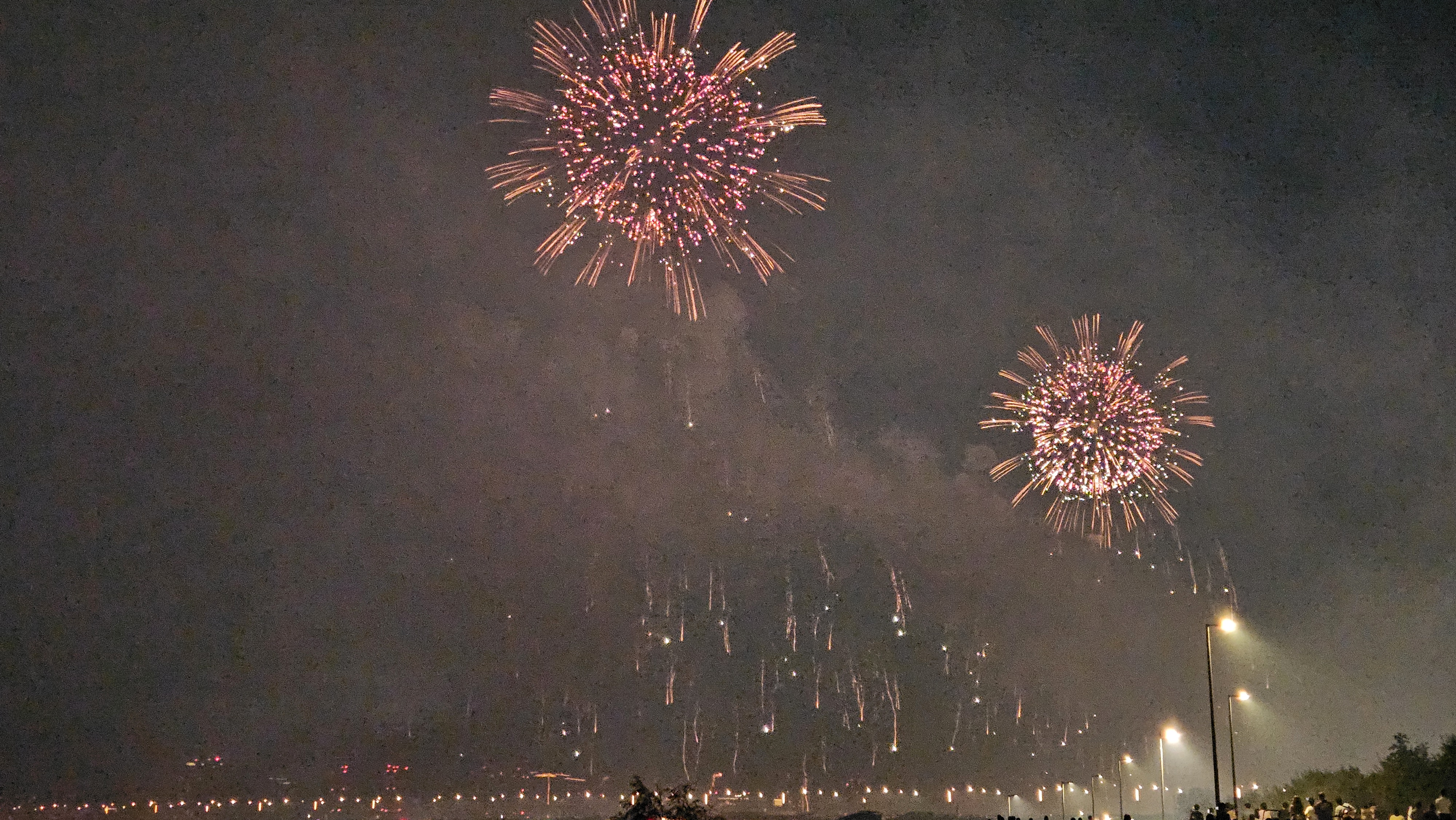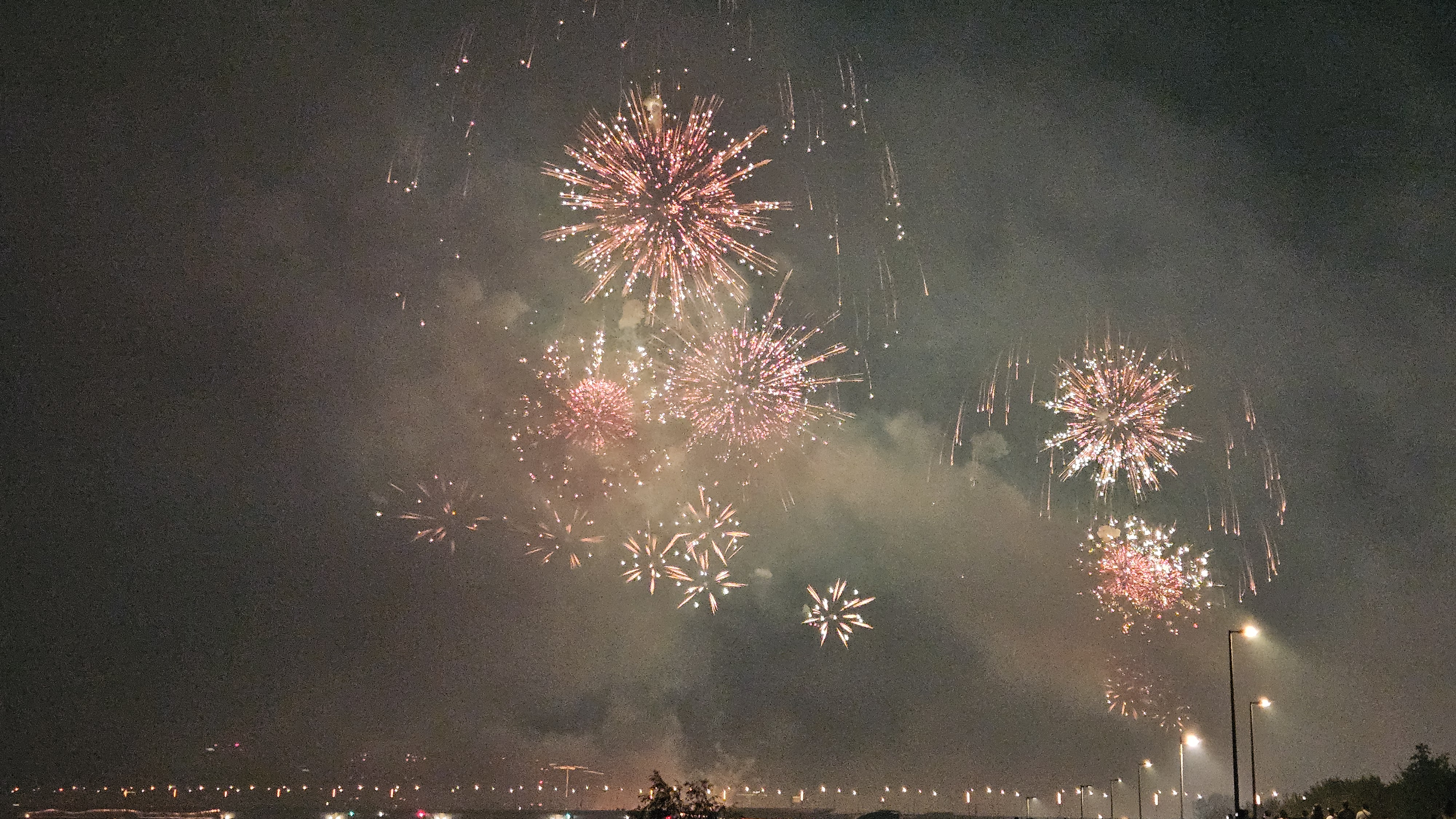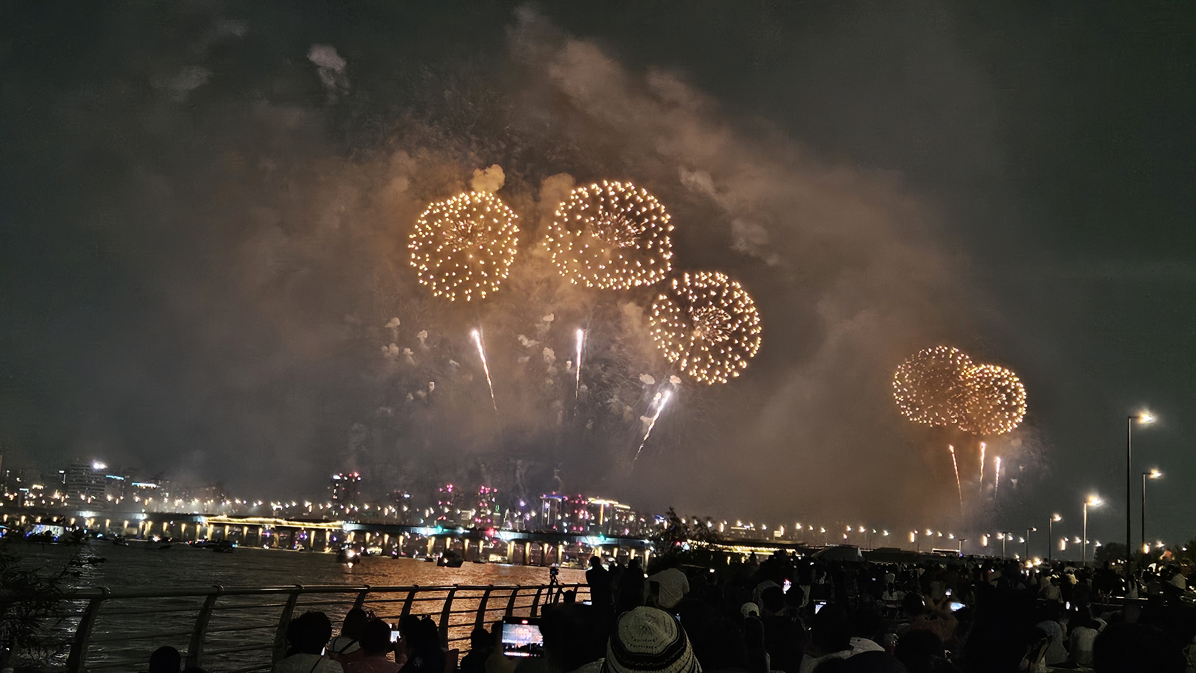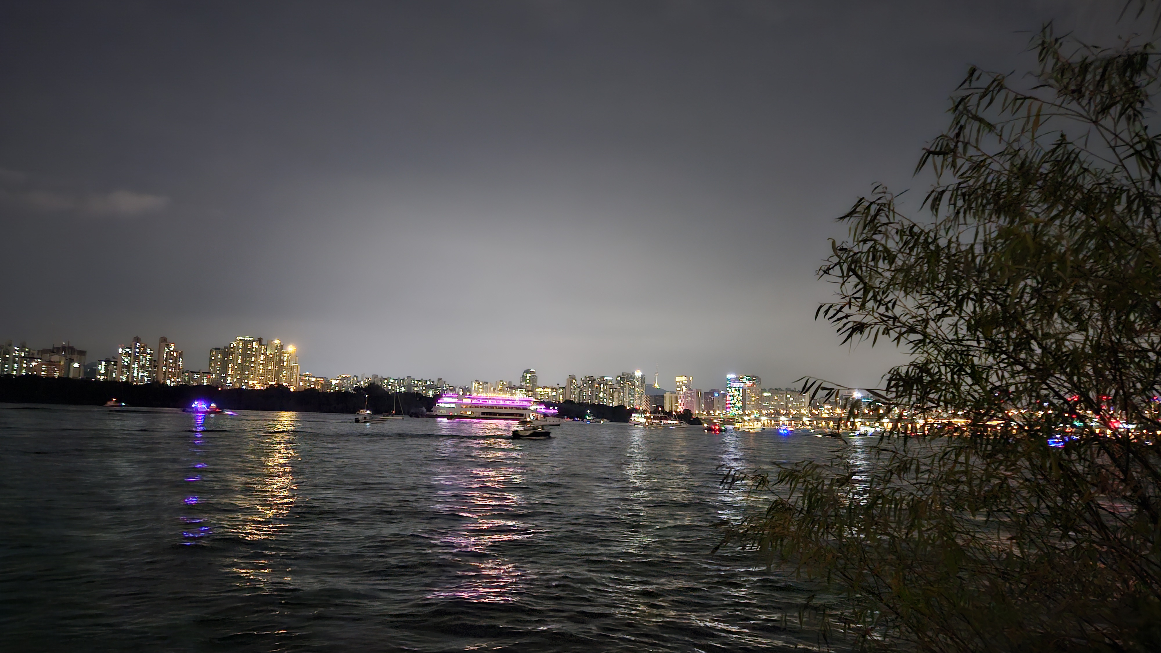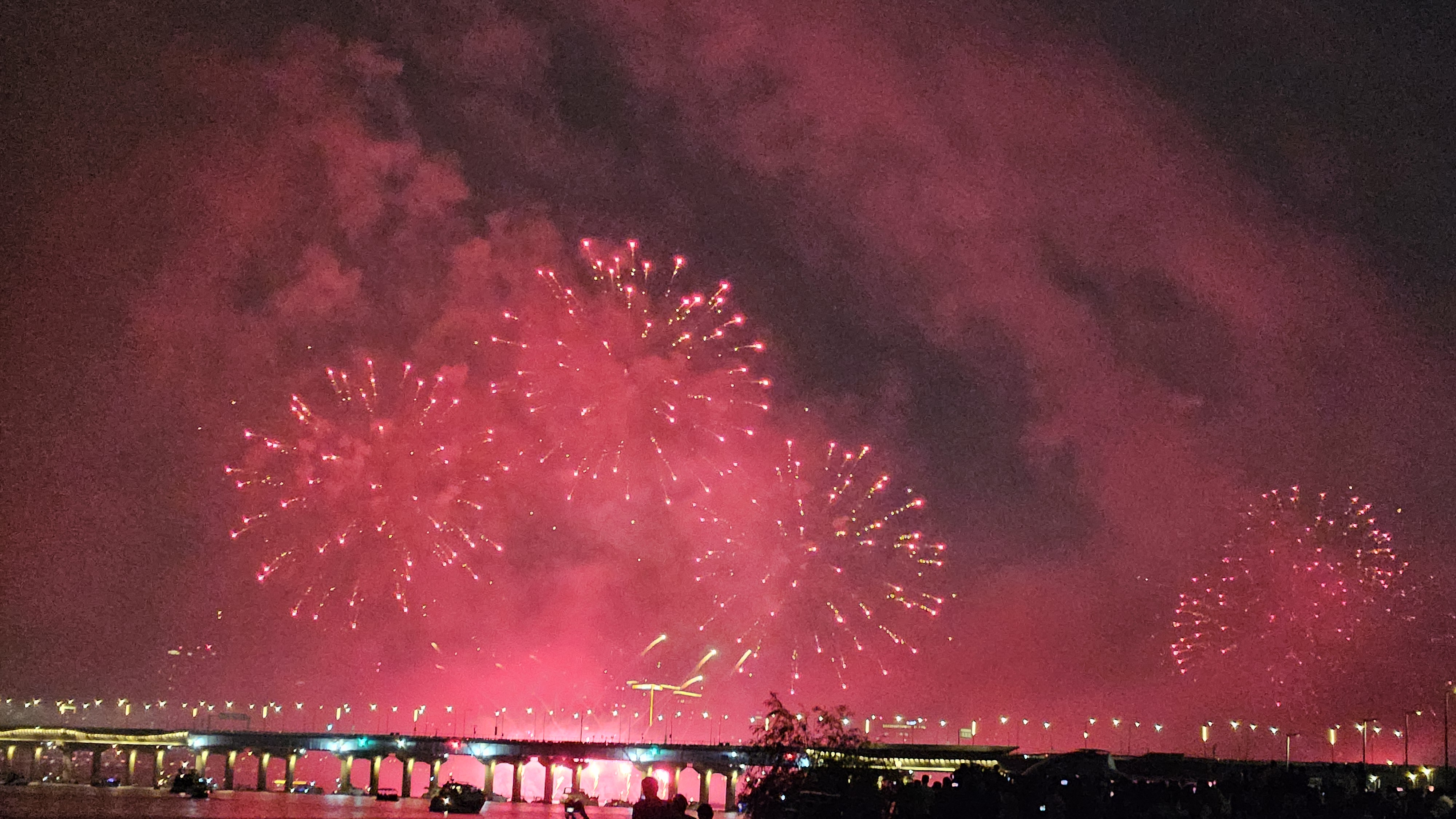 기존에는 63빌딩 앞에서 생생하게 봤는데, 이번엔 식구들과 당산역에서 저녁식사를 한 후 서강대교까지 걸어가서 관람했습니다.