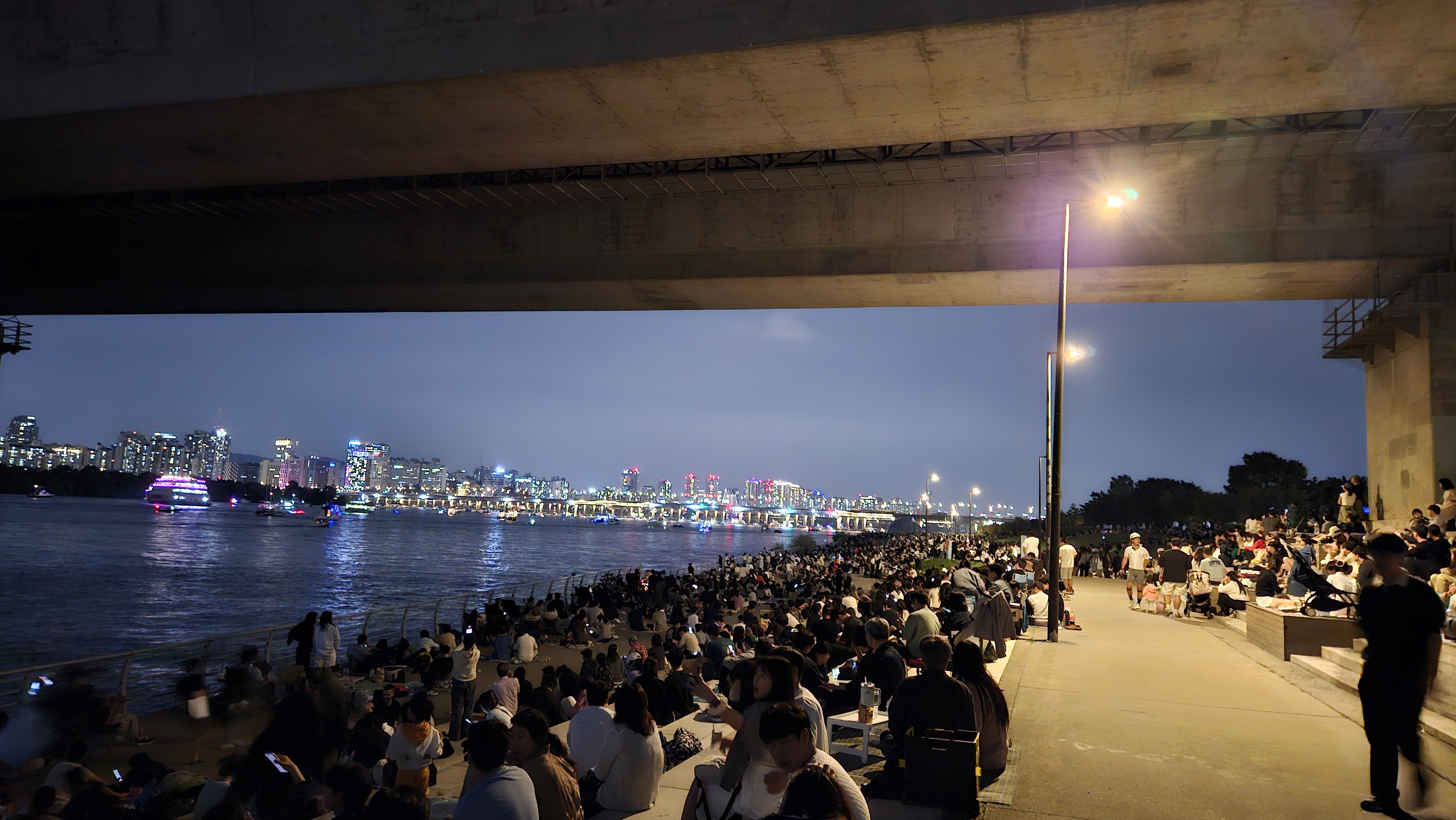 원효대교에서 1km 정도 떨어진 서강대교 아래에도 서울 세계불꽃축제를 즐기러 온 시민들로 가득했습니다.