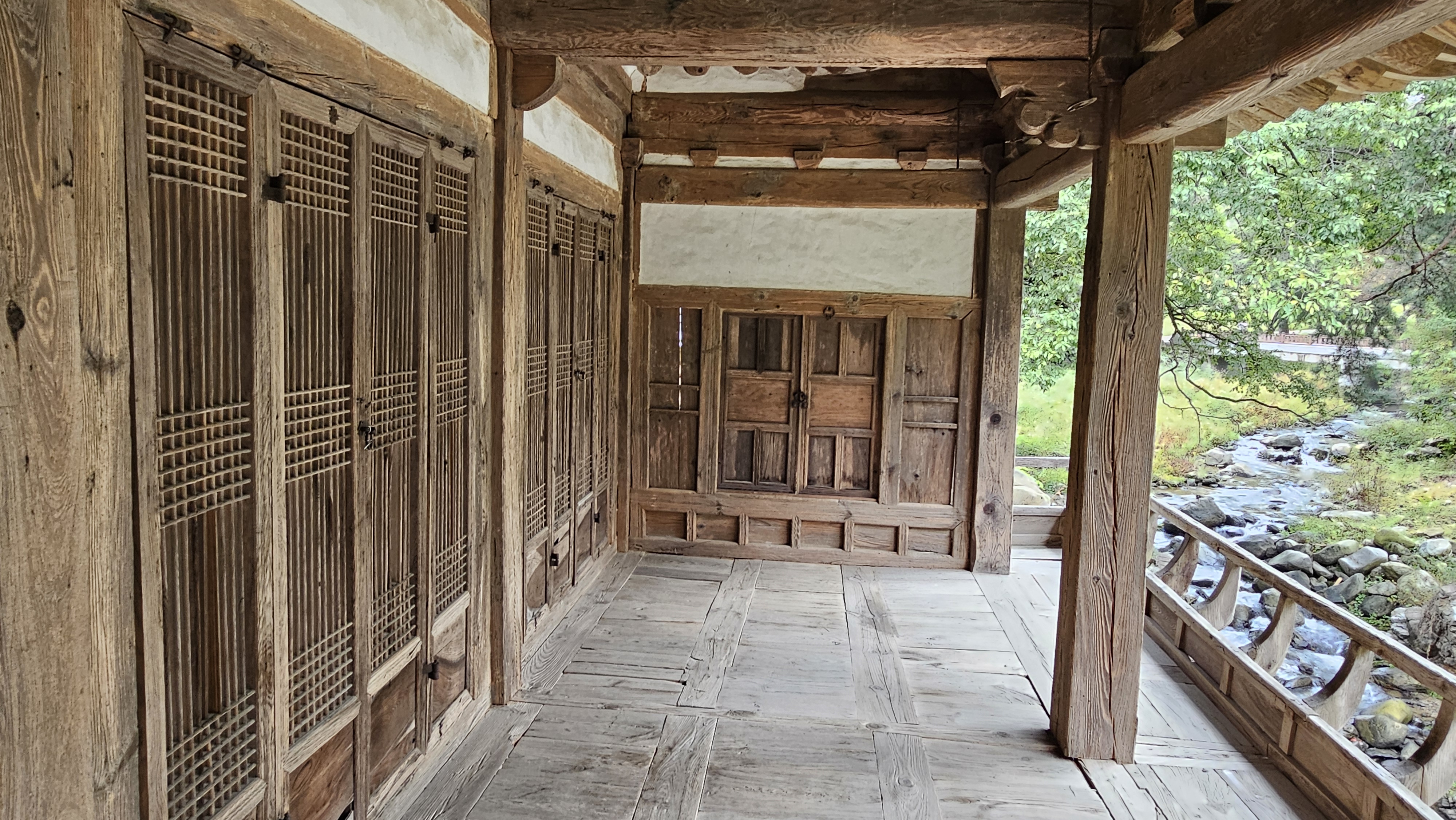 정면의 왼쪽 두 칸은 온돌방으로, 우측 한 칸은 대청마루로 사면에 난간을 설치했습니다.