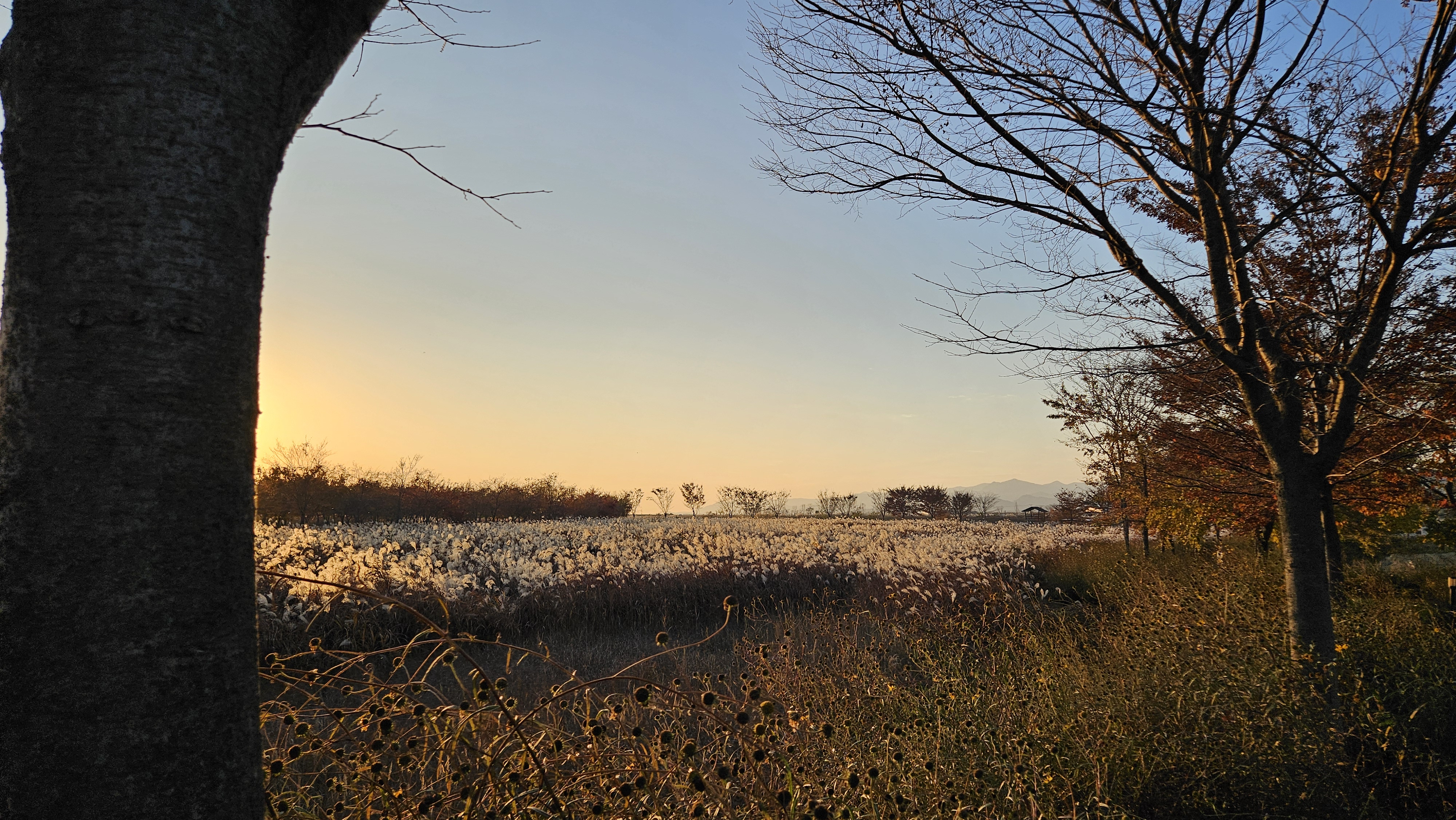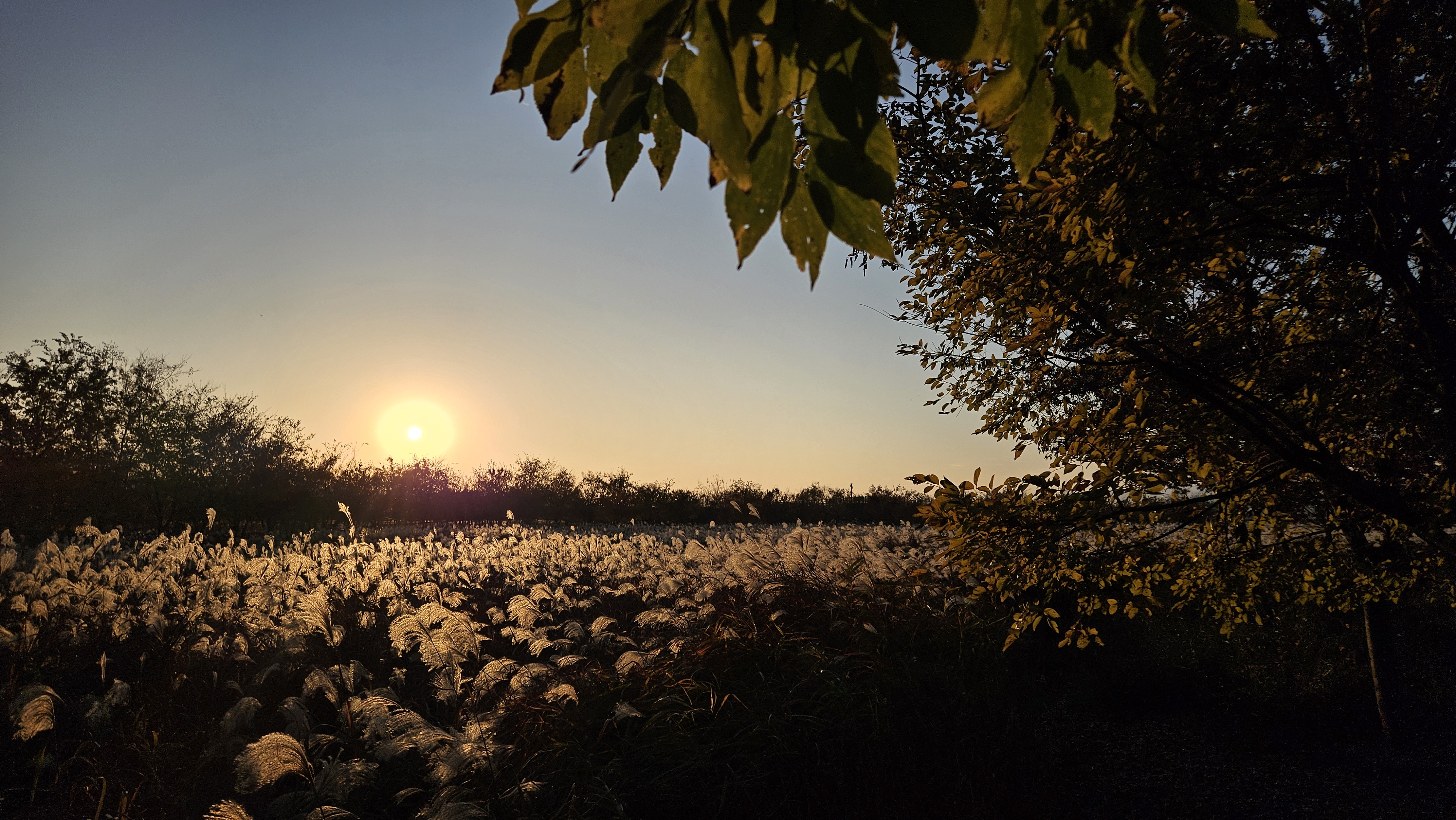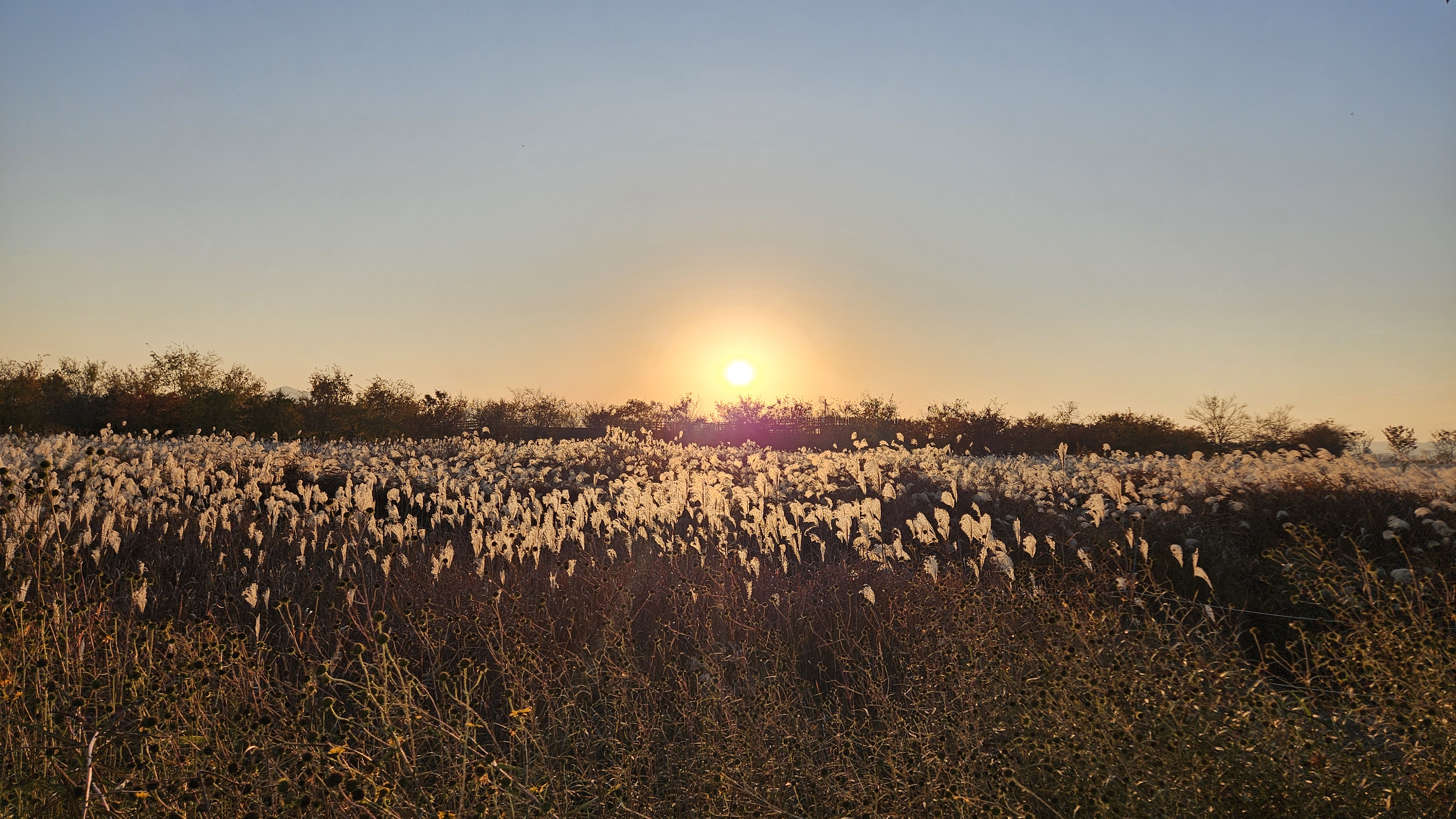 갈대 너머로 해가 지고 있네요.