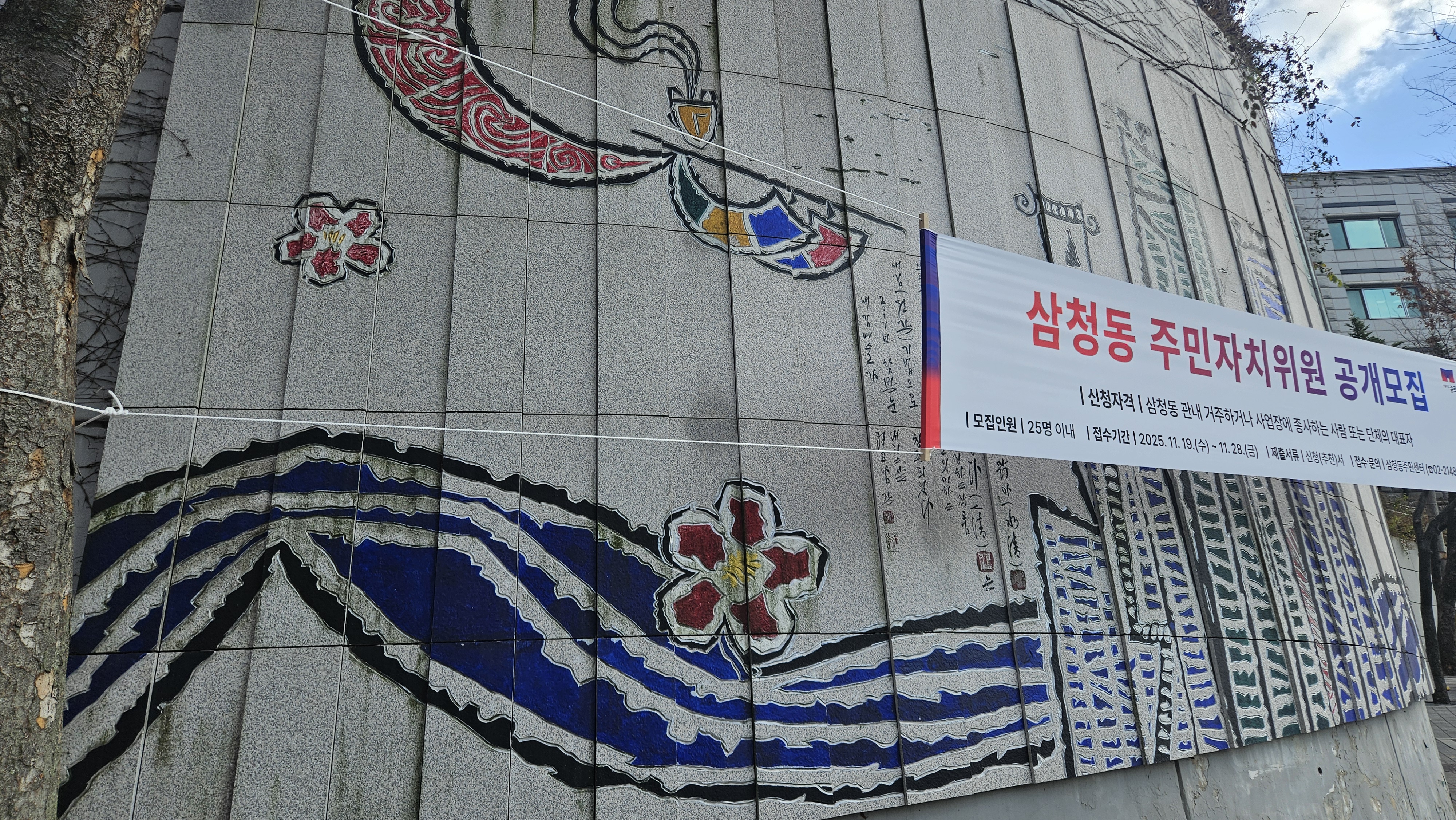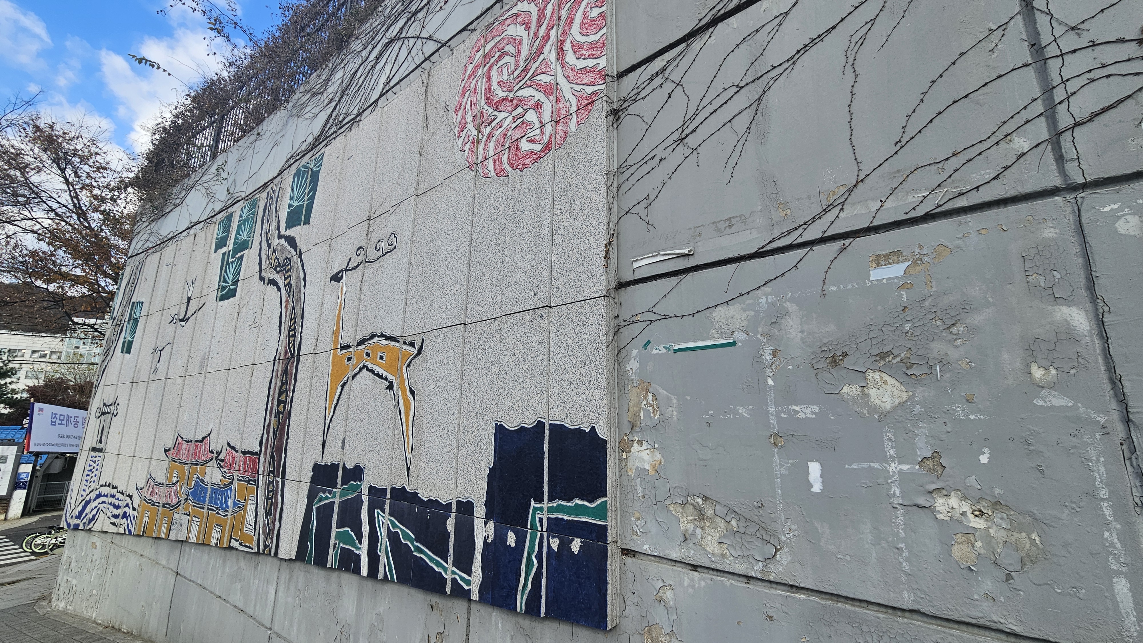 2017년 이렇게 높은 옹벽을 아름답게 꾸미고자 하는 마을 사람들의 뜻을 담아 전각 예술가인 정고암 선생의 재능기부로 종로구에서 설치한 삼청의 꿈이라는 작품이라고 합니다.