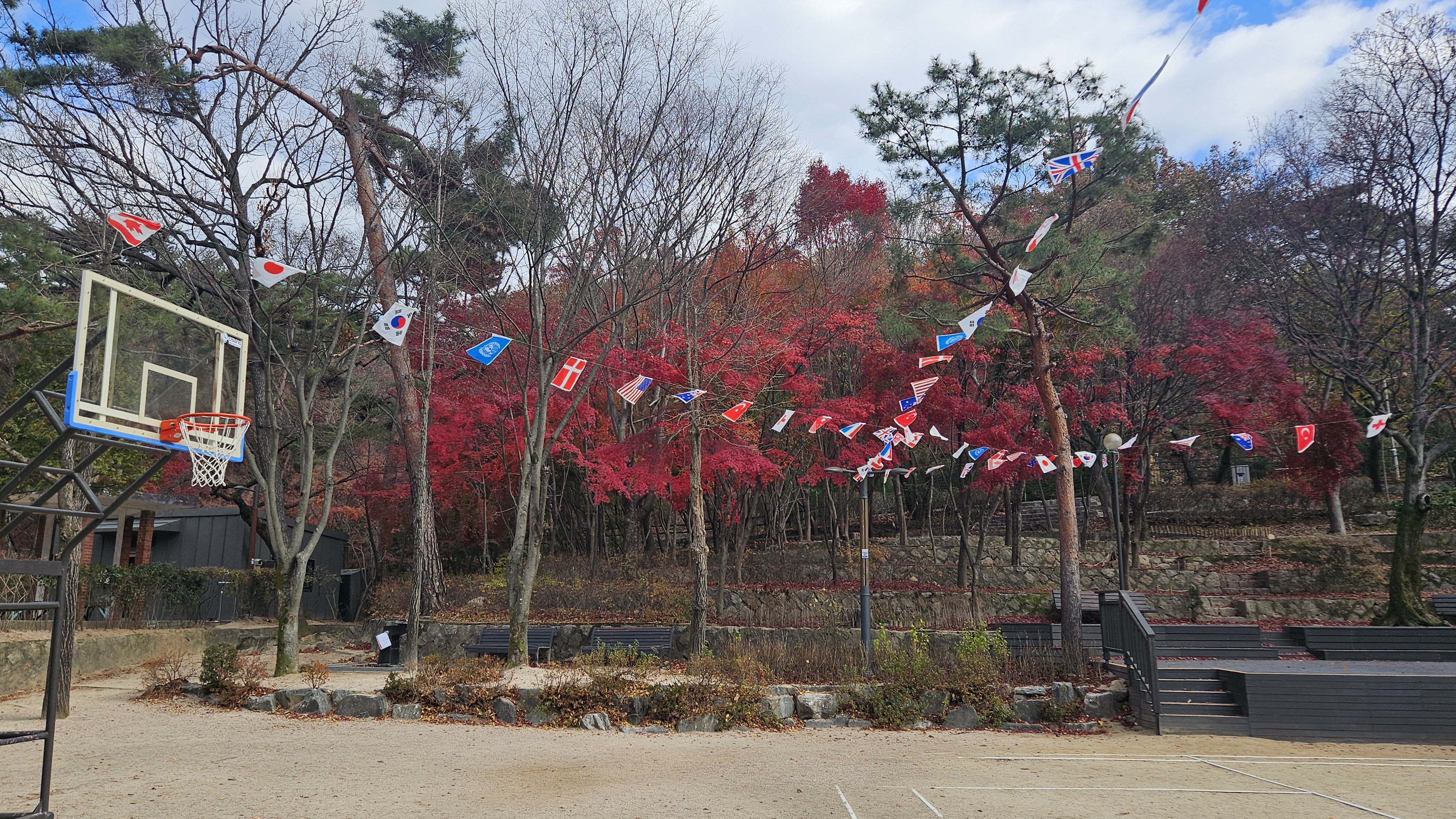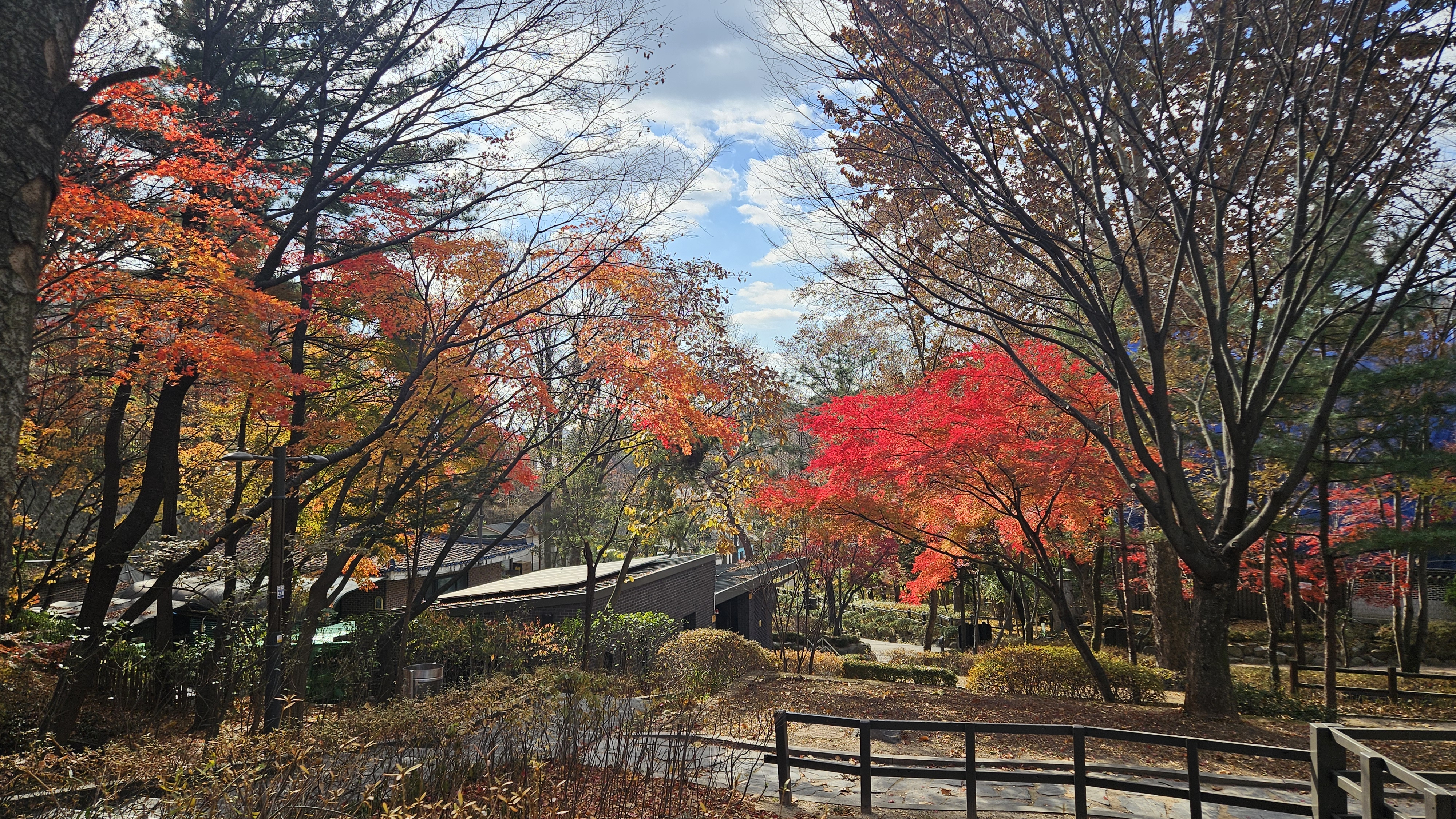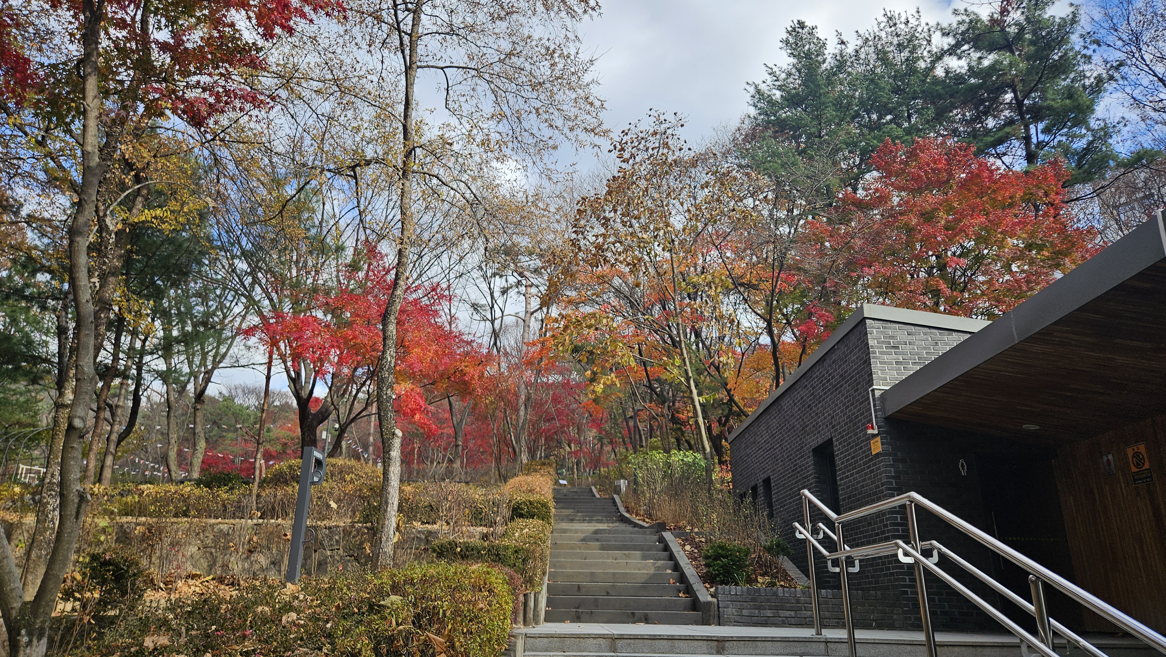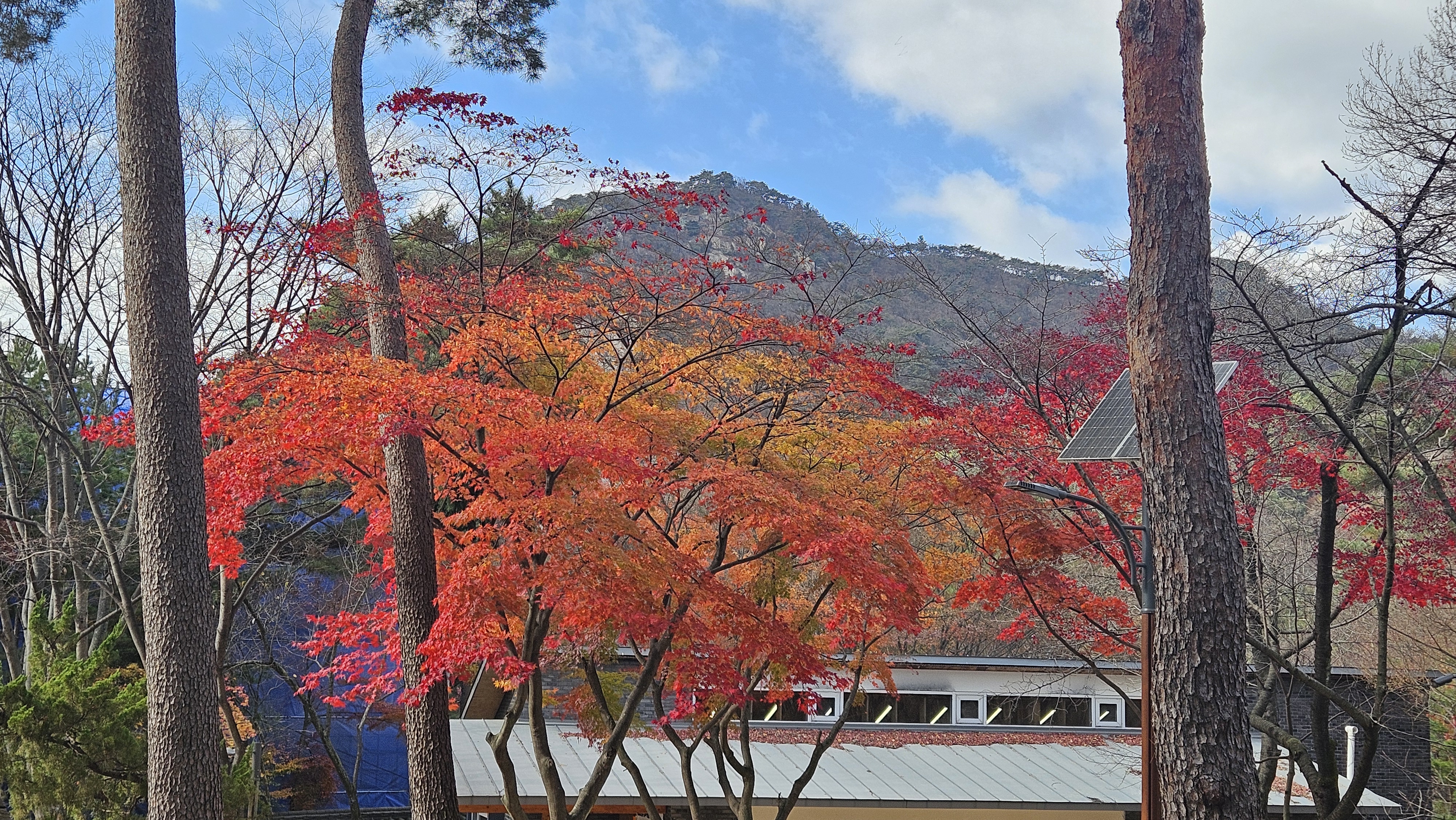 유아숲체험장 주변에 있는 단풍나무가 붉게 물들어 매력을 뽐내고 있습니다.