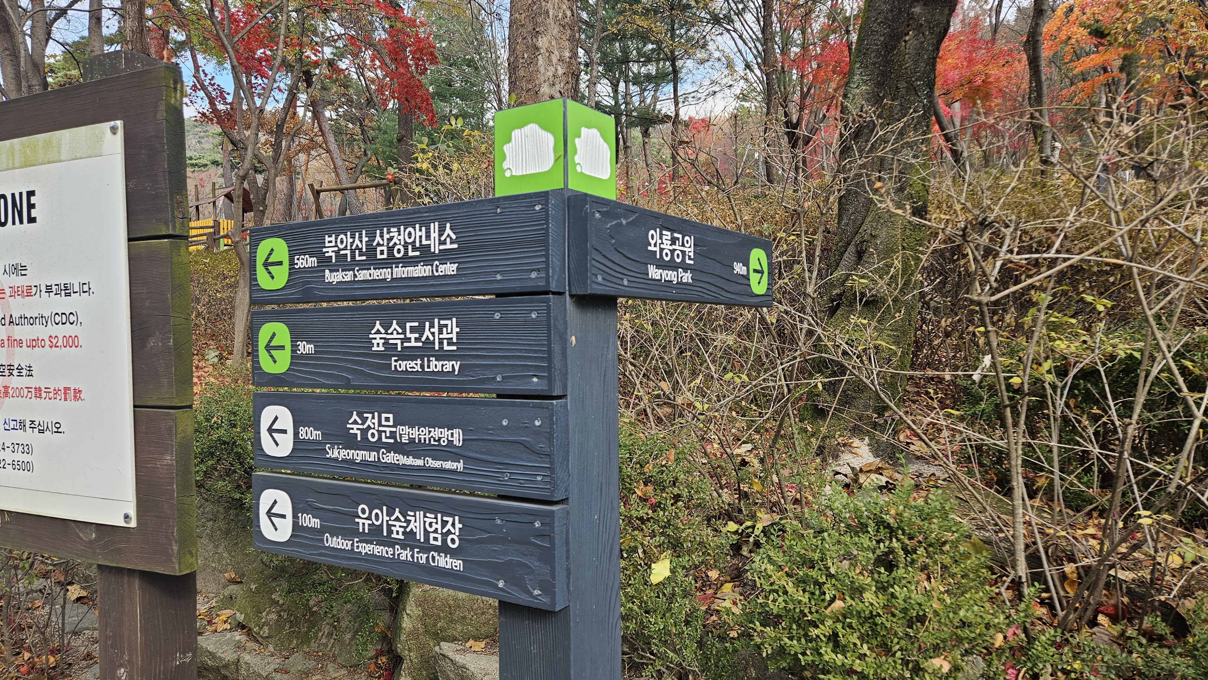 삼청공원에는 숲속도서관과 유아숲체험장 등이 있고요.