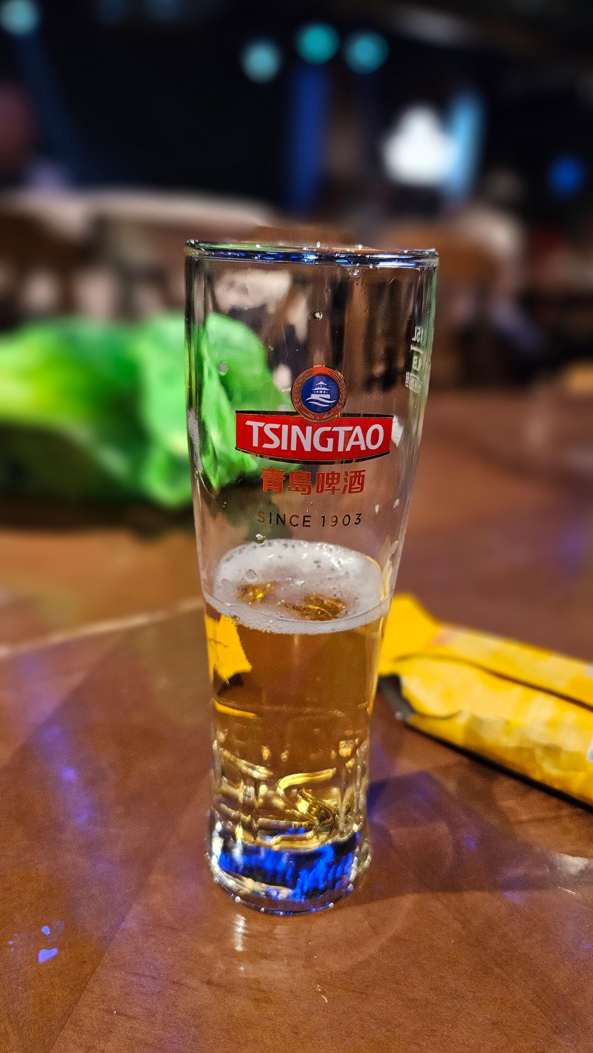 두 번째 시음하는 맥주는 우리가 잘 아는 초록병과 비슷한 스타일의 칭다오 순생 드래프트 맥주로 더 맑고 가볍고 청량한 맛이라 첫 잔보다 훨씬 부드러운 맛이 나는 맥주입니다.