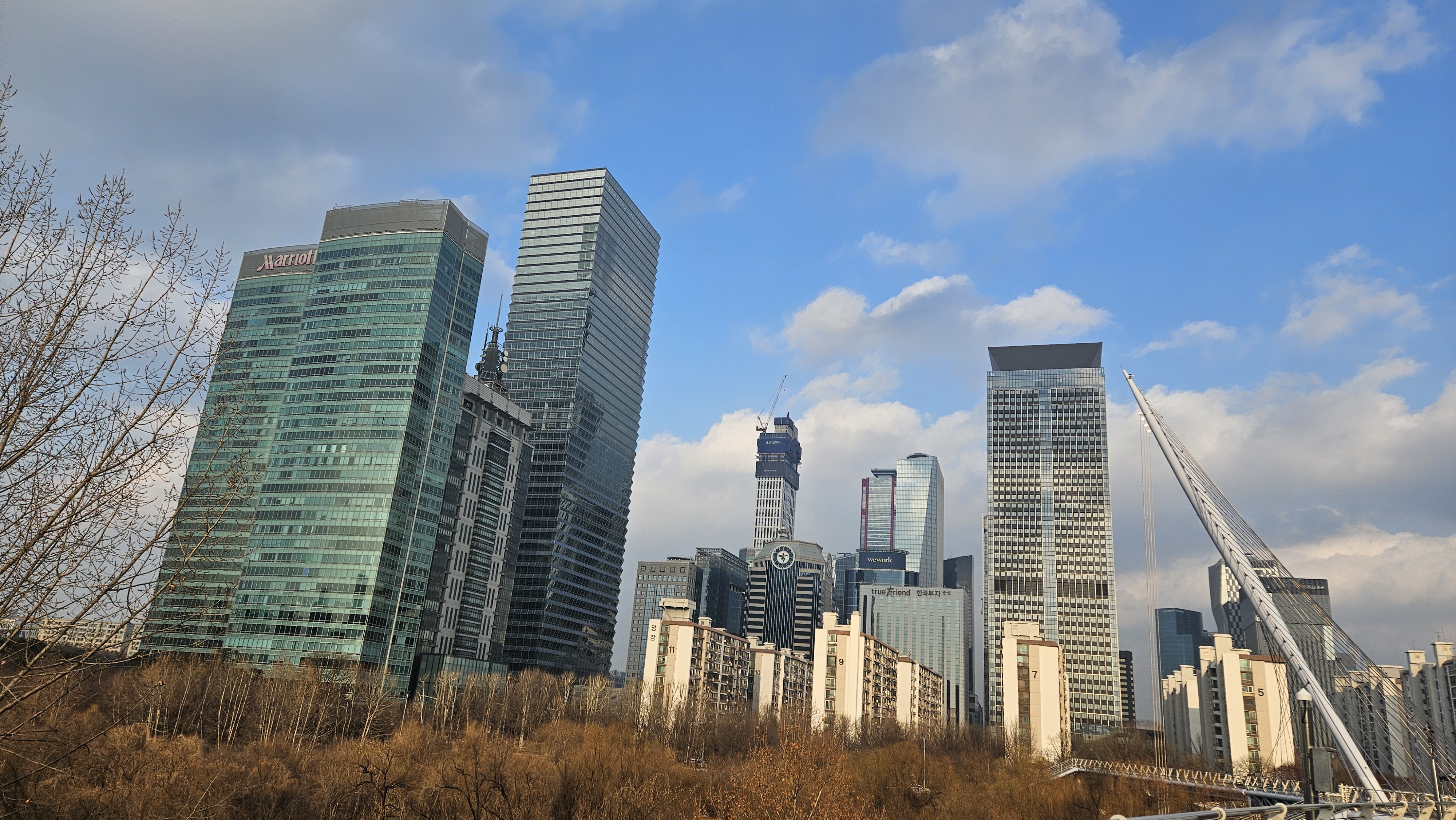 겨울이라 샛강의 신록이 아쉽지만, 주변 풍경이 예뻐 산책할만합니다.