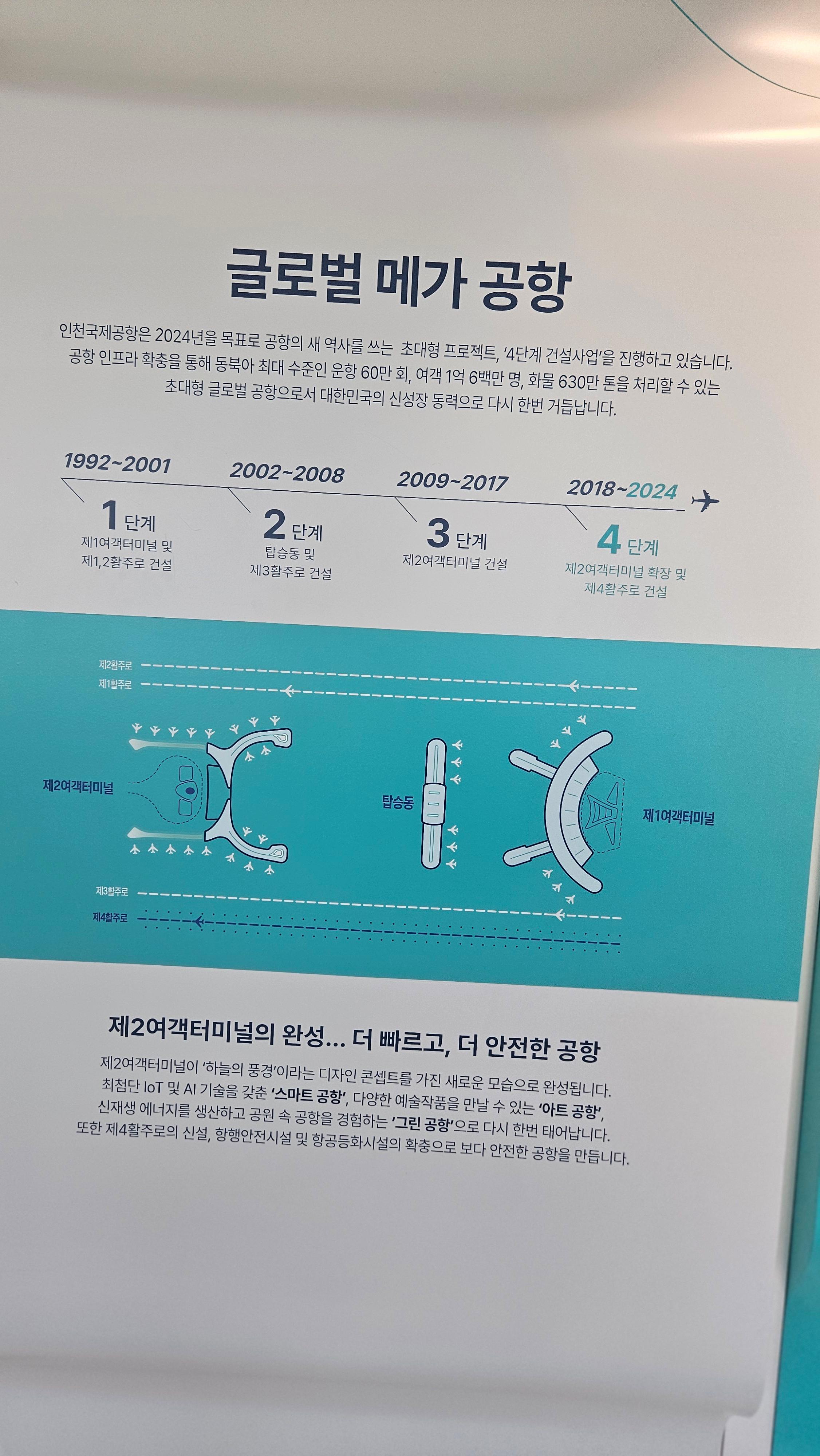 인천국제공항은 2024년까지 4단계 건설사업을 진행하며 현재에 이르고 있습니다.