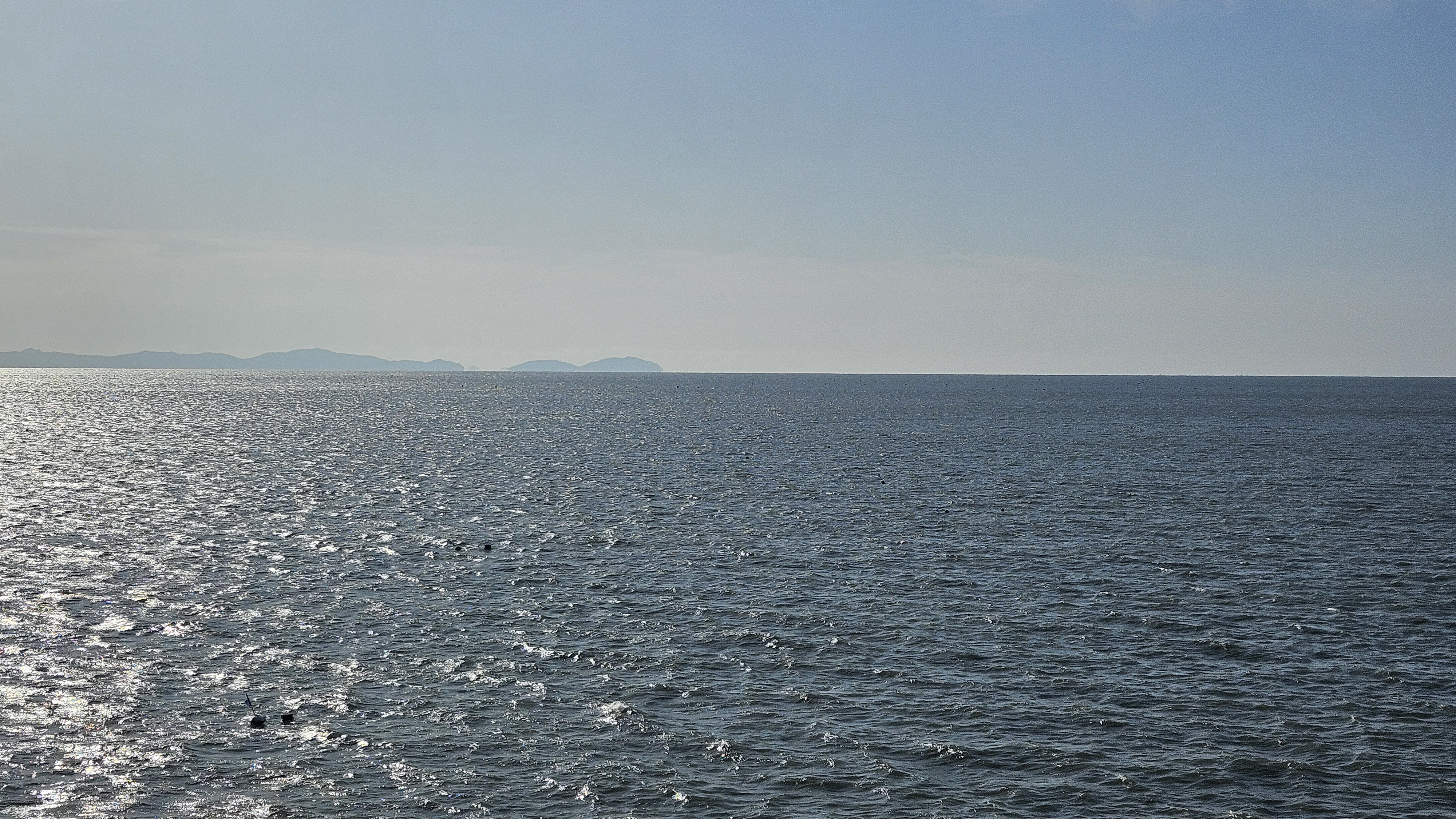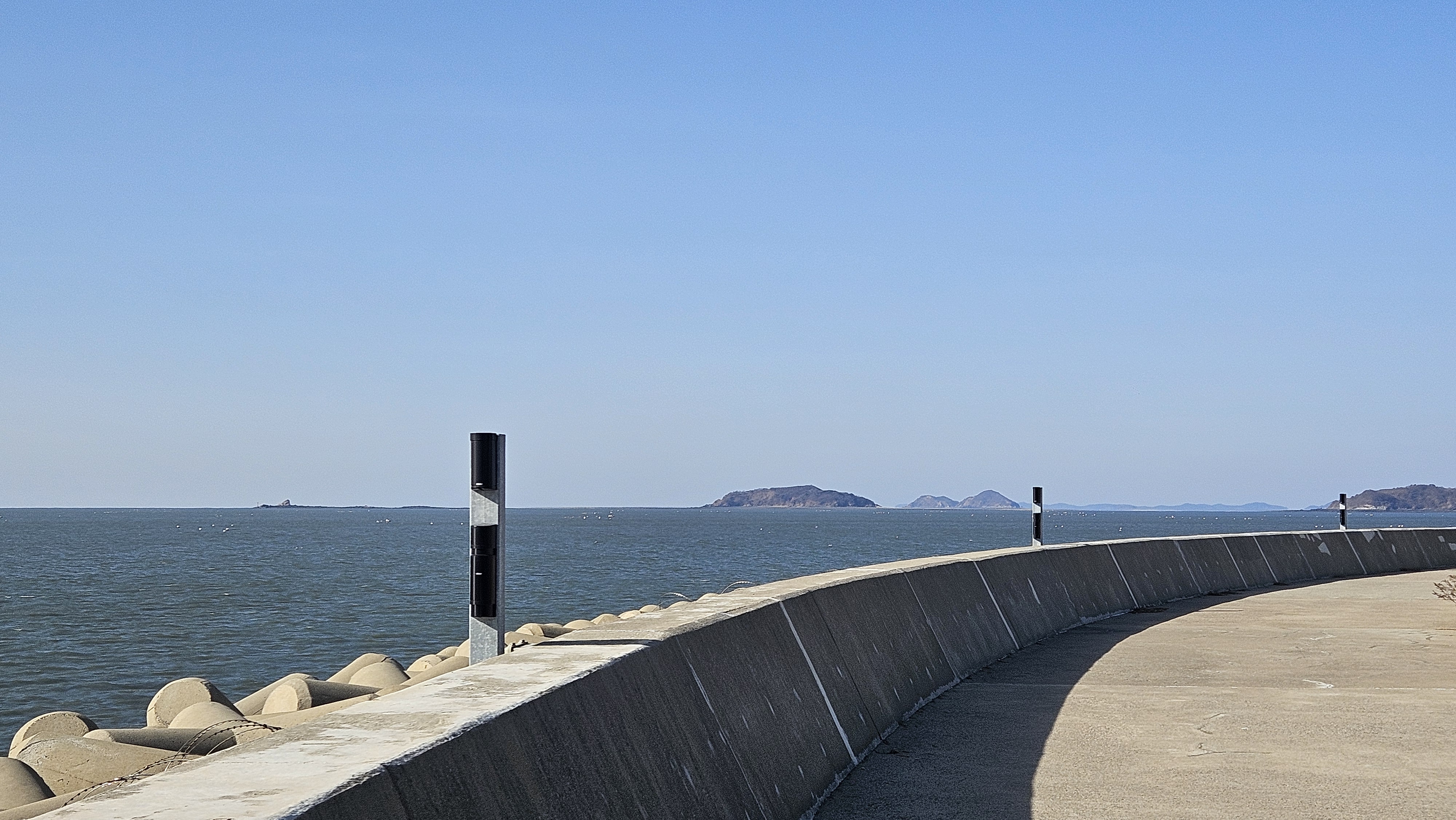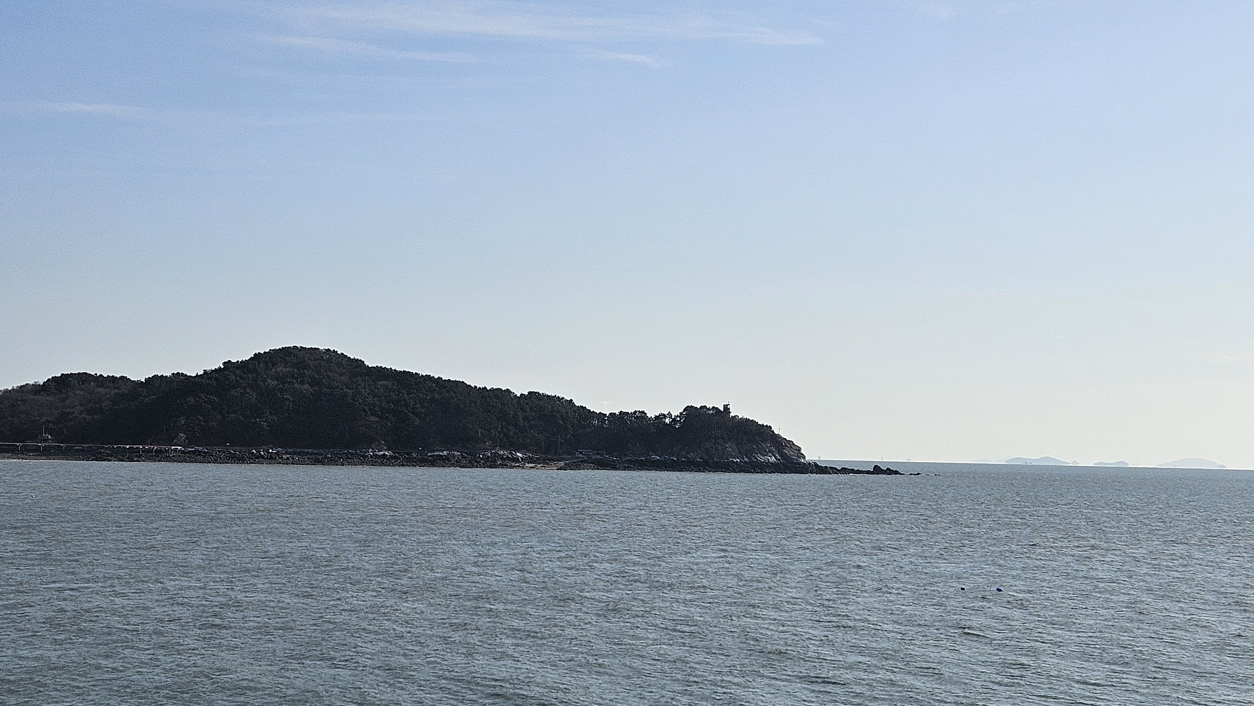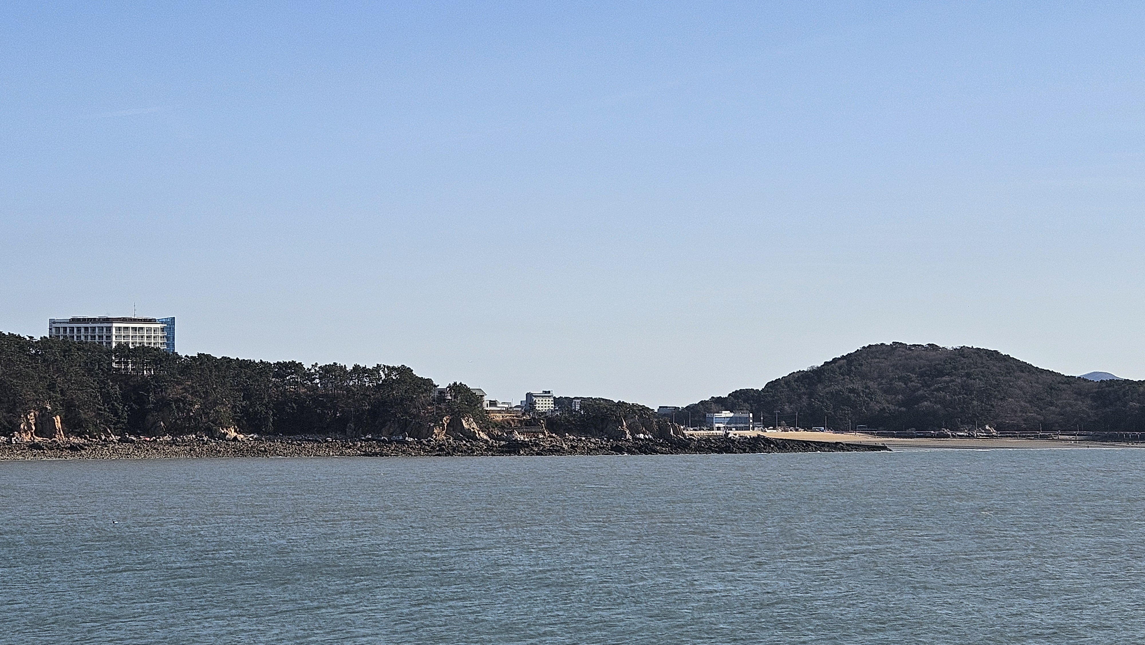 서해바다의 갯벌 대신 바닷물이 가득 차 있는 바다모습입니다.