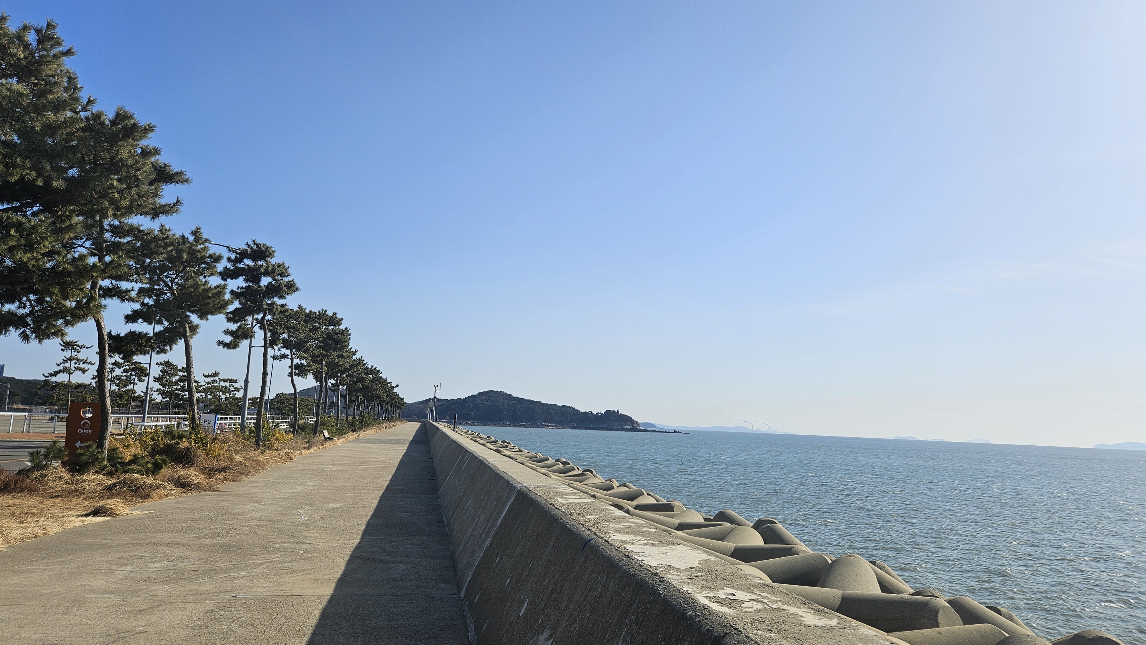 왕산마리나항으로 들어가면 주차장 요금이 부과되는데, 입구에 오픈형 무료 주차장이 있으니 비어 있다면 해변쪽 주차장을 이용하면 됩니다.