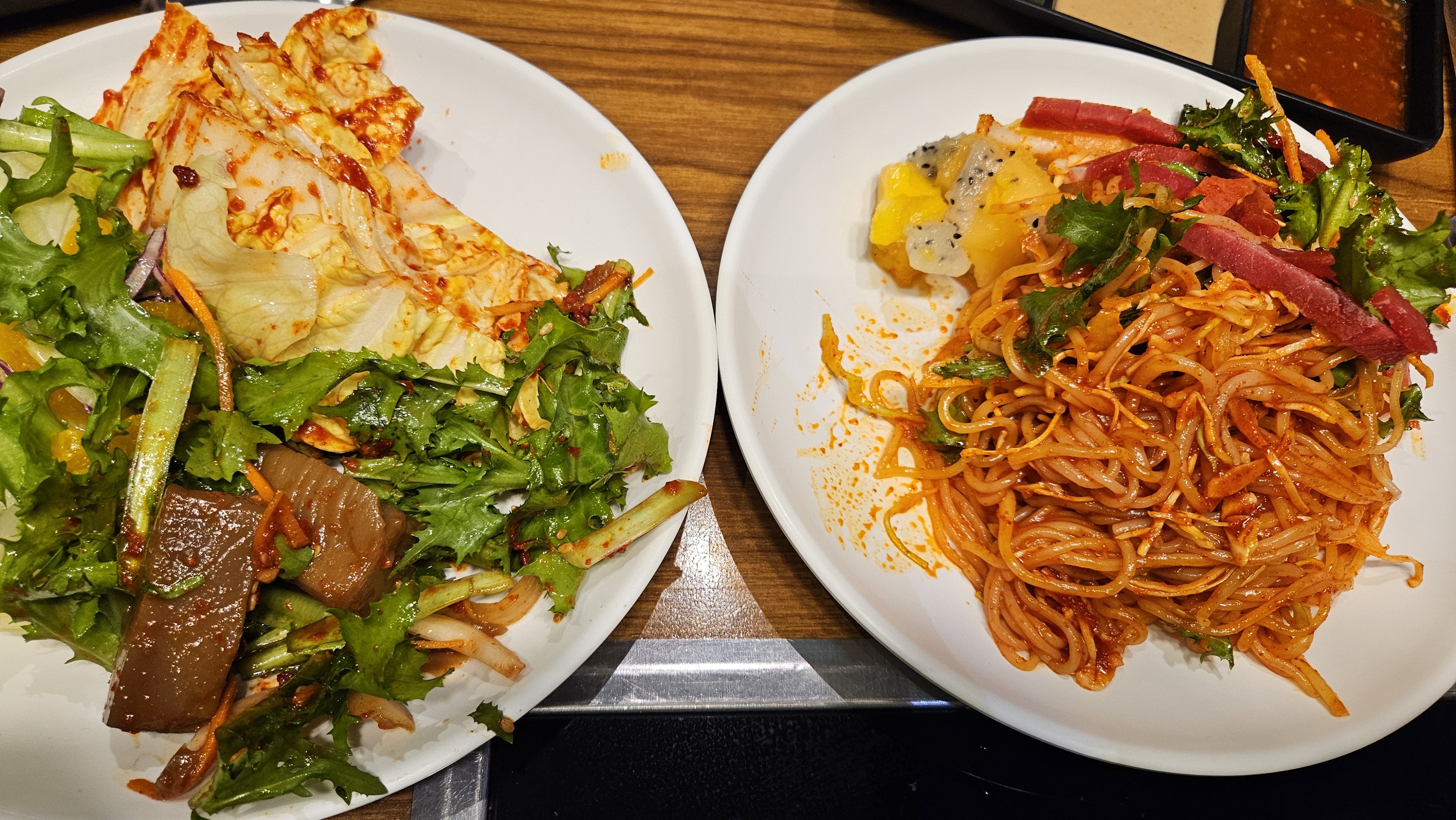 샐러드바도 잘 갖추어져 있고, 음식도 맛있어서 프리미엄 샐러드바 및 샤브샤브 전문점인 샤브올데이에 뒤지지 않는 것 같았습니다.