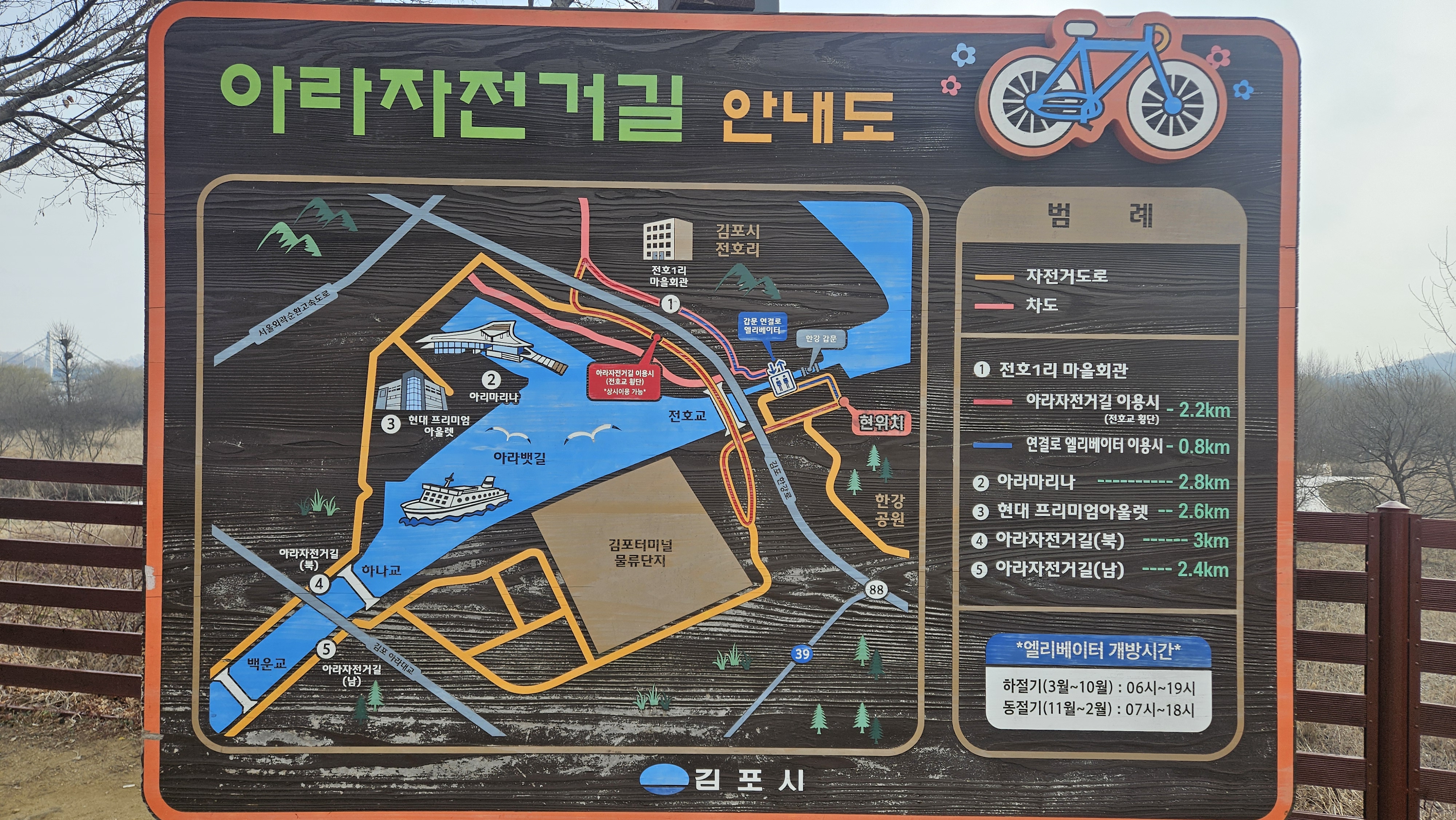 김포 아라한강갑문에서 시작해 인천 아라서해갑문까지 이어지는 18km 자전거길로 자전거로 소요시간은 약 1시간 거리인데요.