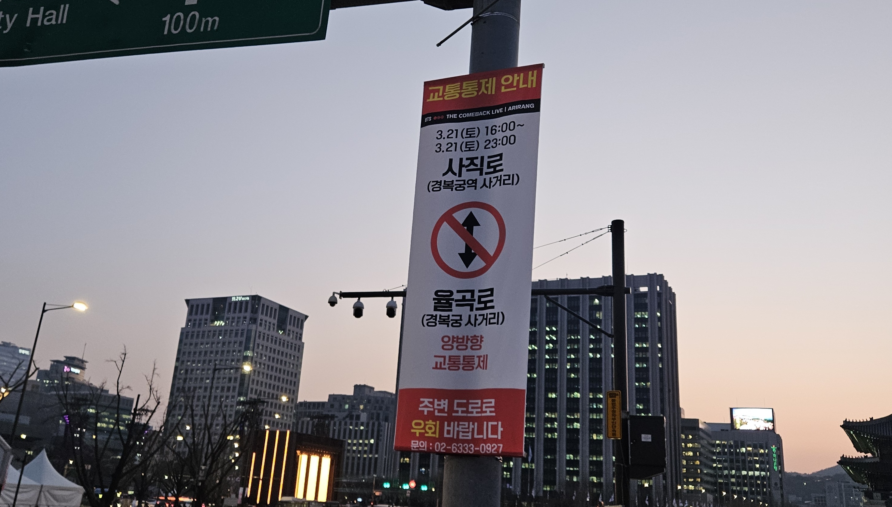 공연이 열리는 광화문광장 도로인 세종대로 상하행은 이미 전날인 금요일 21:00부터 통제되기 시작해, 3월 22일(일) 06:00까지 통행이 금지됩니다.