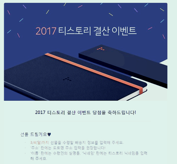 2017년 티스토리 블로그 결산이벤트가 1월 4일부터 진행 됐었는데요.