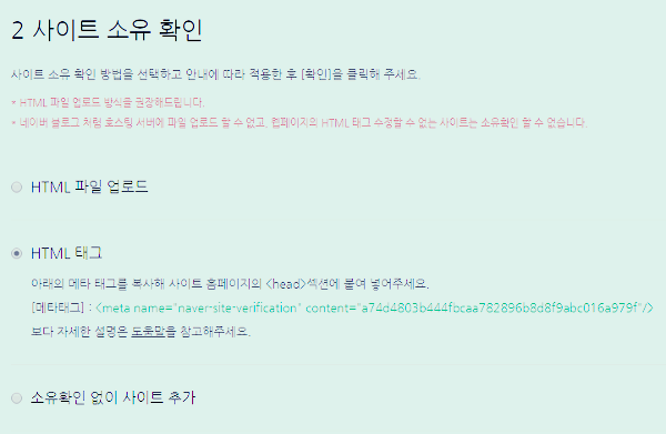 "확인"을 클릭해 주면 사이트 소유확인이 나옵니다.