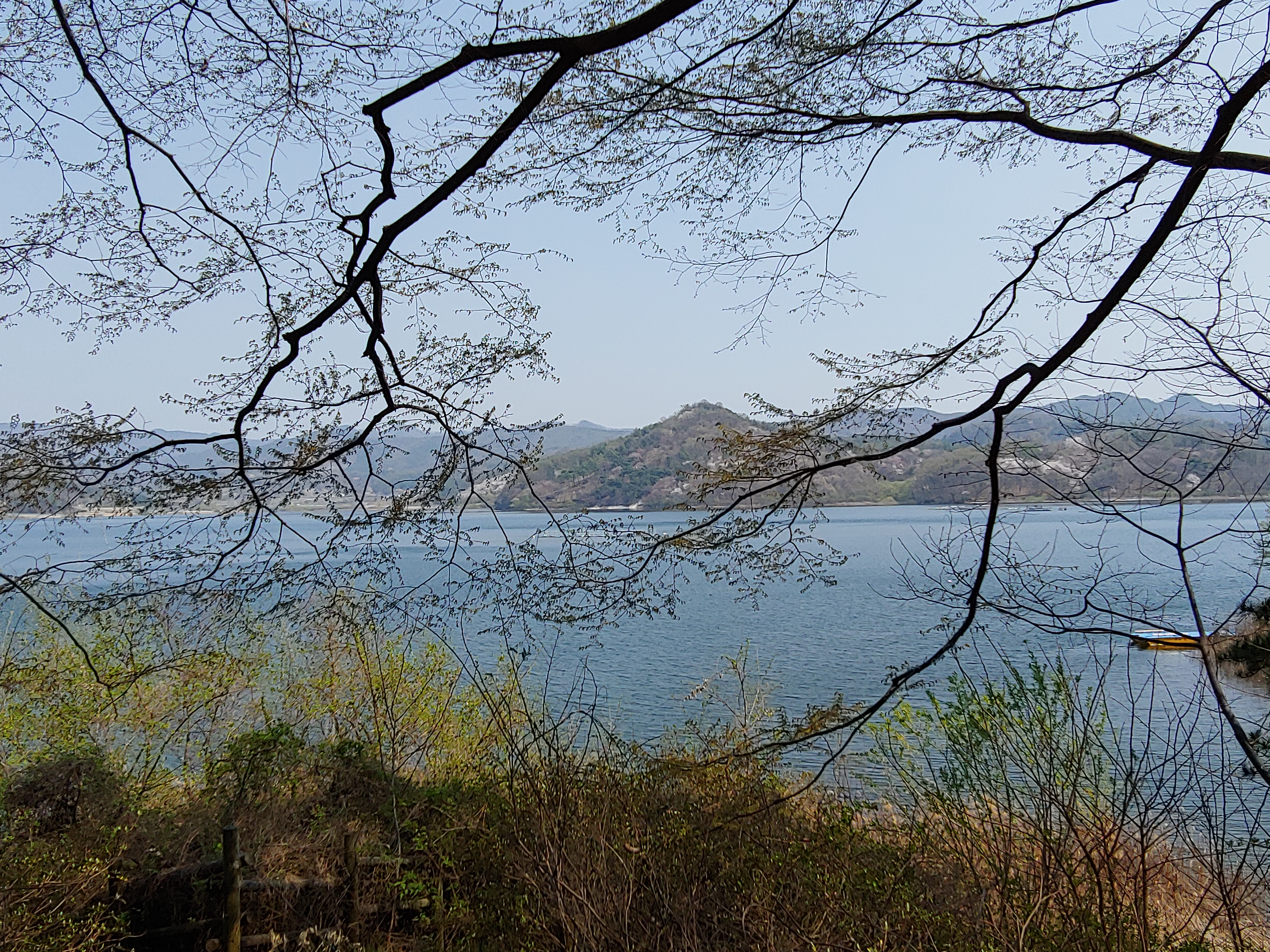 대청호 펜션인 휴보힐링펜션으로 가는 숲길에서 바라본 대청호 모습