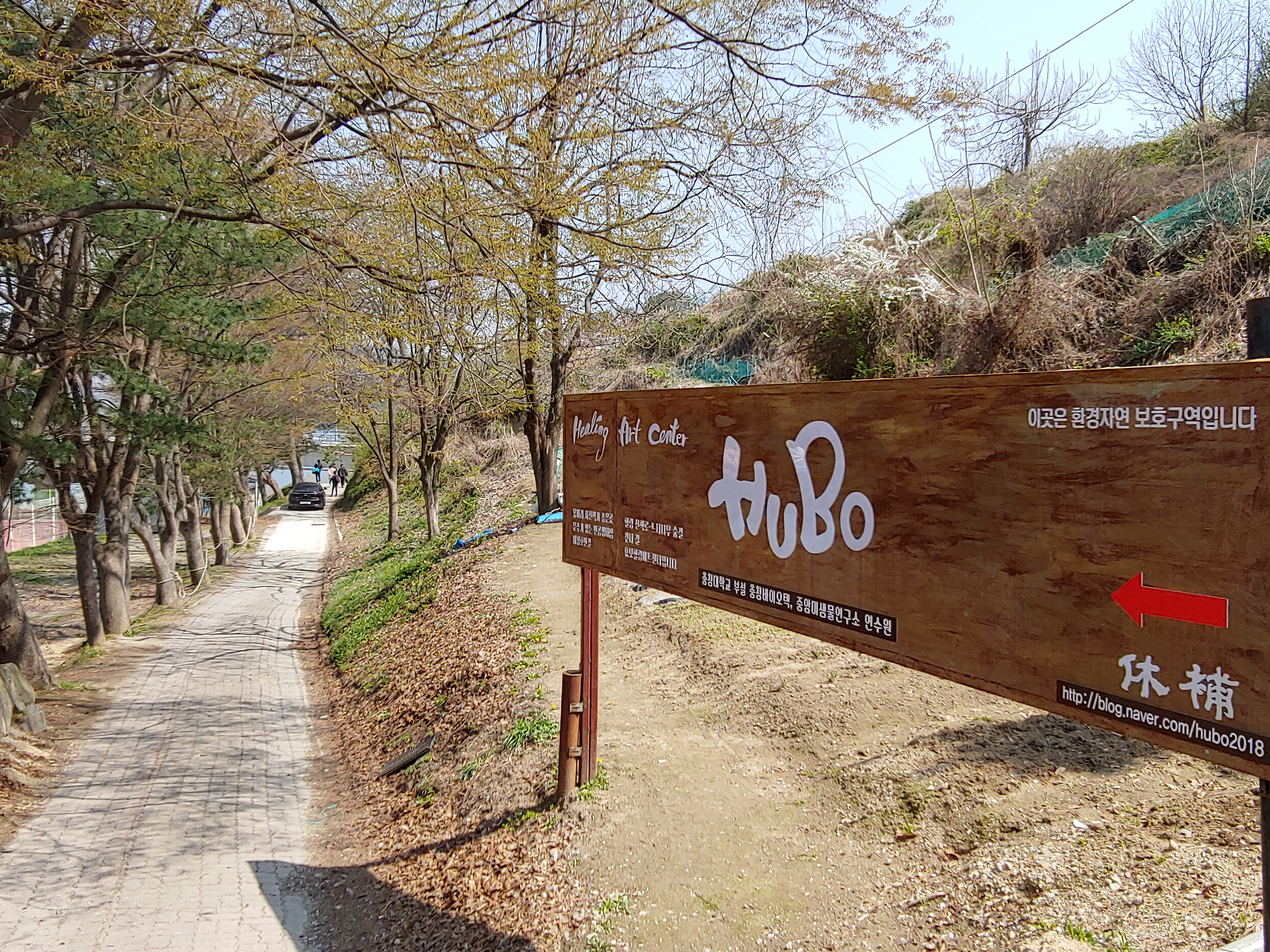 그 길을 걷다보면 힐링아트센터 휴보라고 새겨진 커다란 바위가 나타납니다.