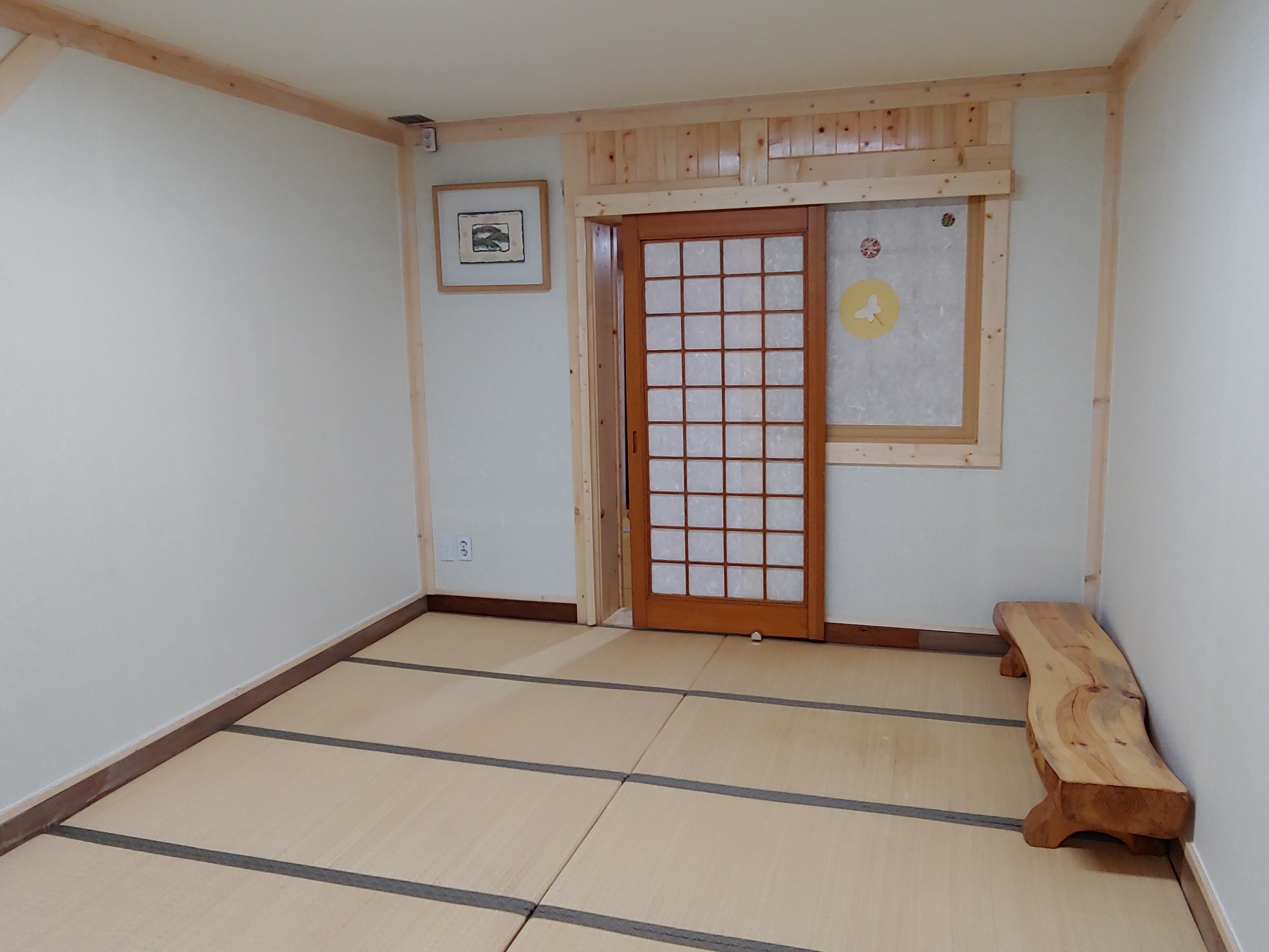 원목탁자와 다다미가 깔려진 명상실이 있습니다.