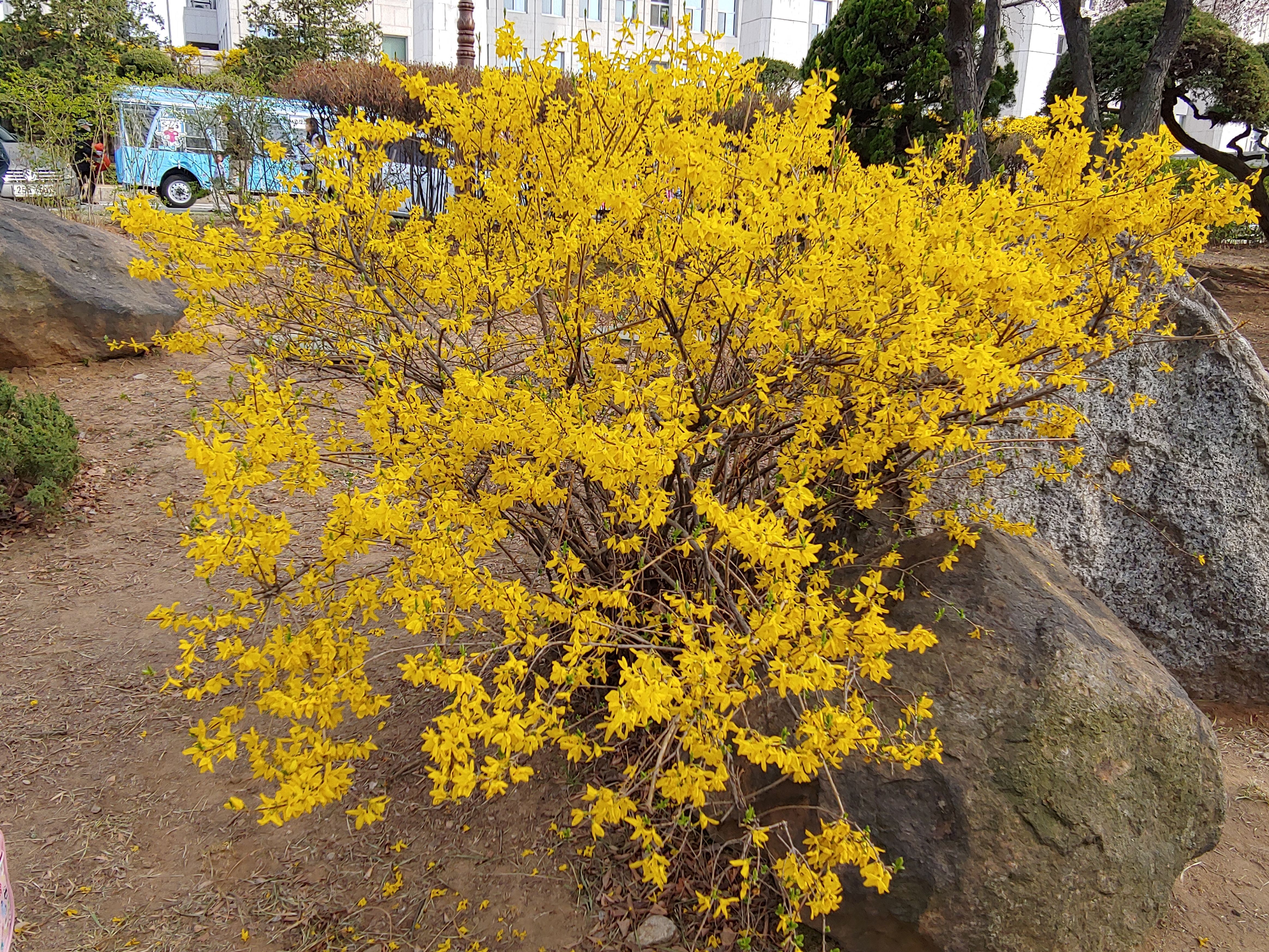 국회 뒤편엔 곳곳에 노란 개나리가 만개해 있어서 좋은 포토존이 되어 있네요.