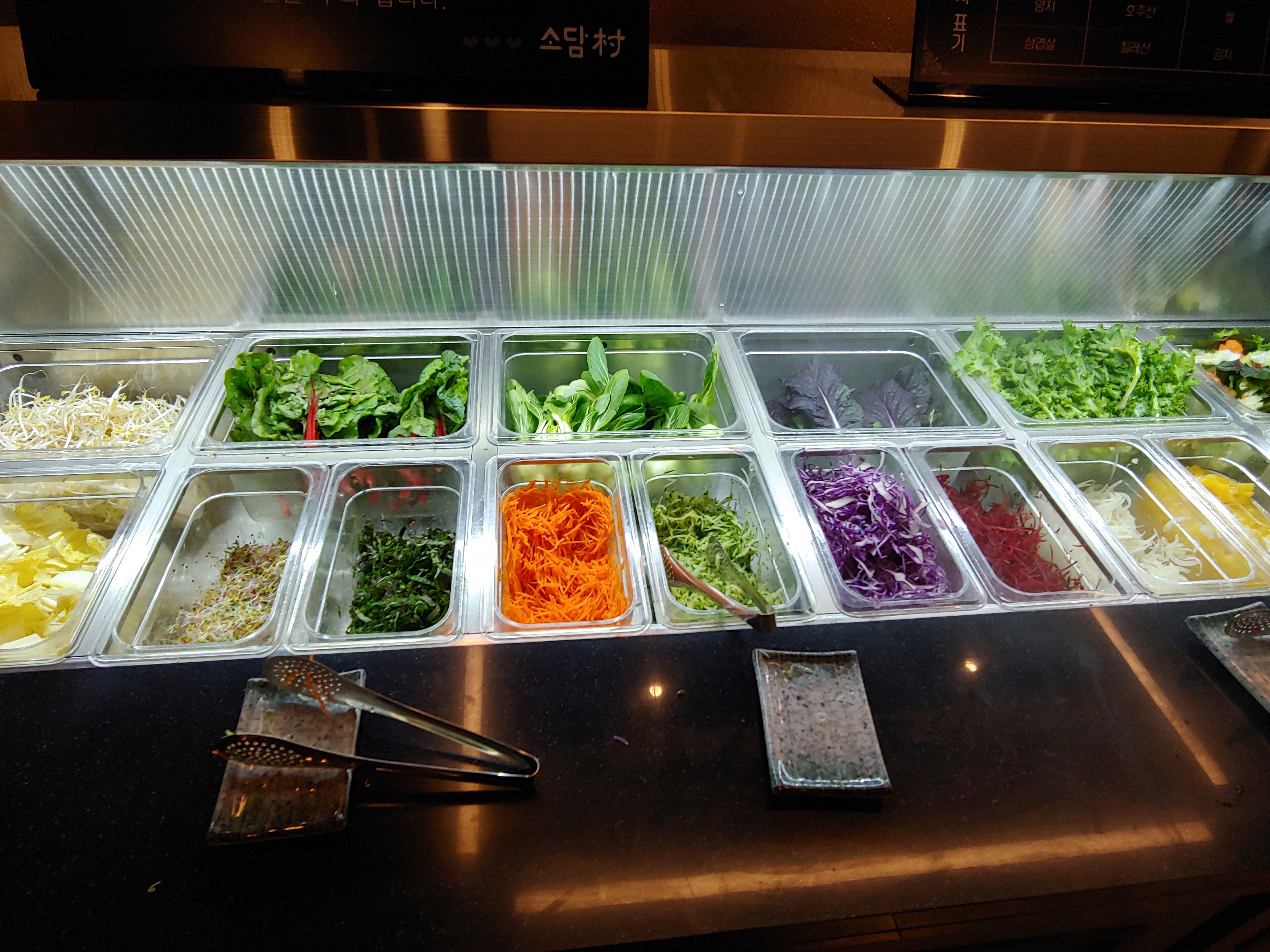 신선한 샤브샤브재료와 야채는 리필바에서 무한리필이 됩니다.