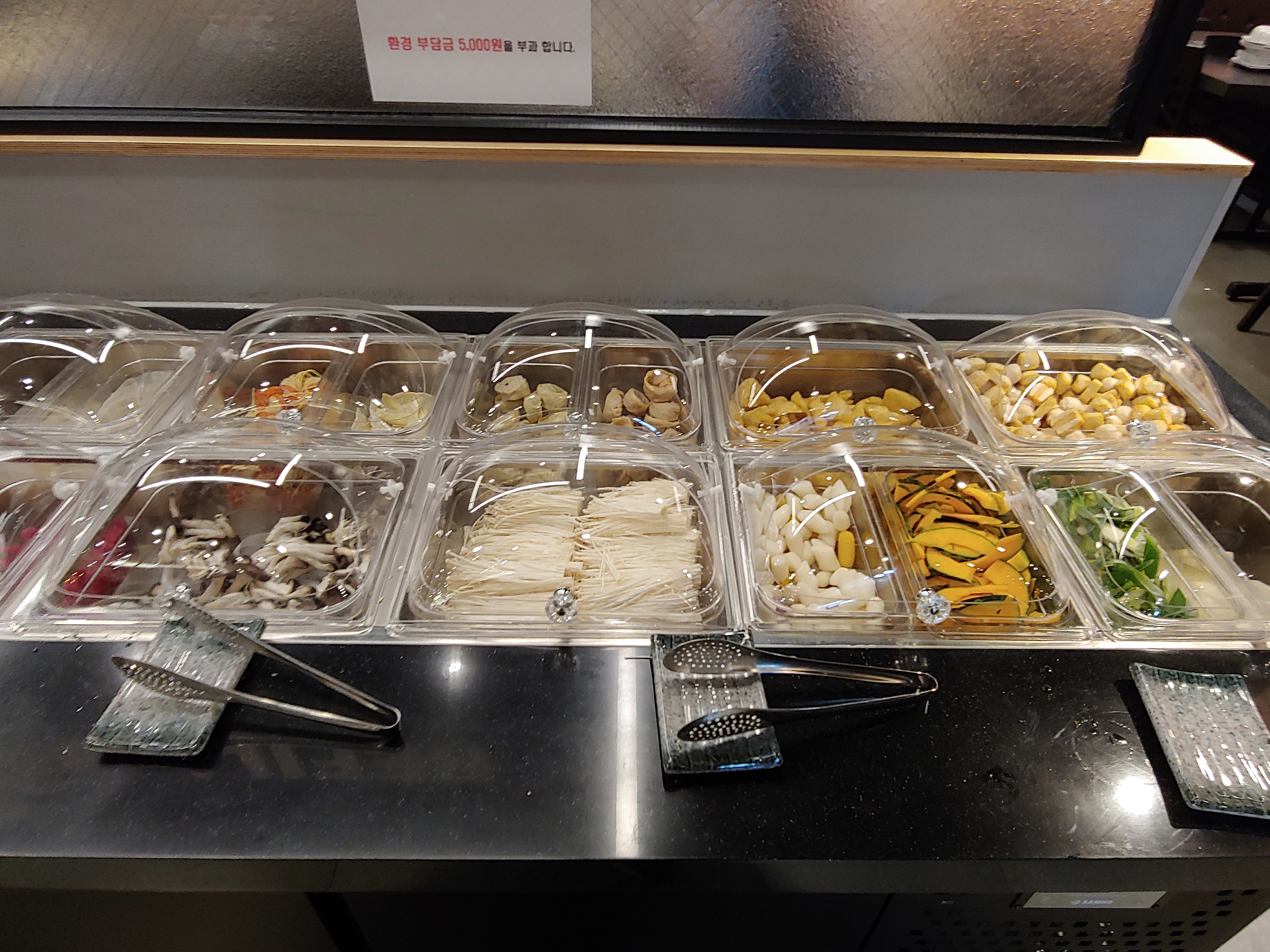 리필바에서 가져온 각종 채소가 샤브샤브에 들어가야 맛있죠.