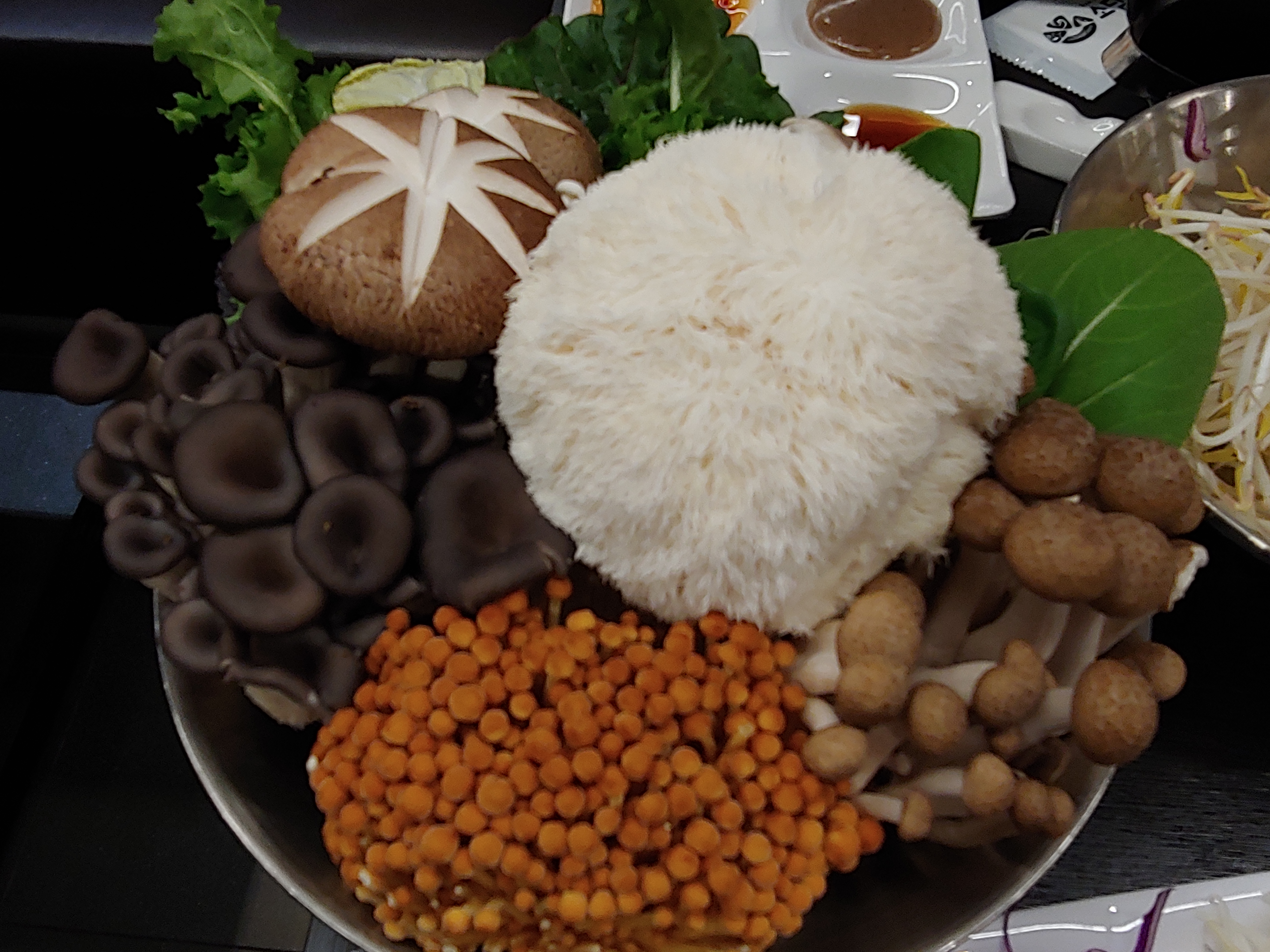 샤브샤브 할 소고기와 월남쌈버섯샤브를 주문하고 나오는 버섯종류들입니다.
