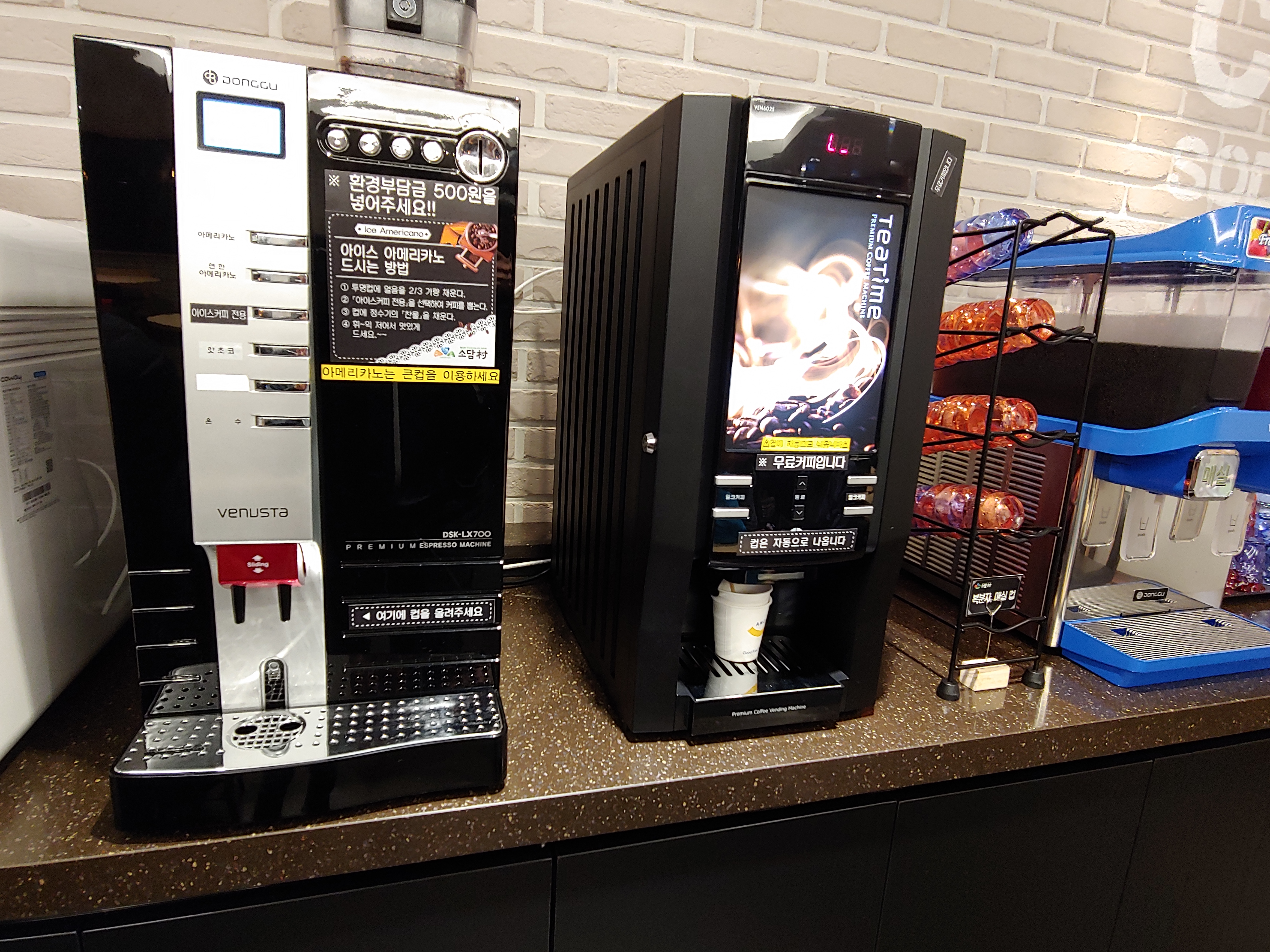 밀크커피는 무료인데 아메리카노는 환경부담금이라 해서 500원을 넣어야 한다는 점은 아쉬웠습니다.