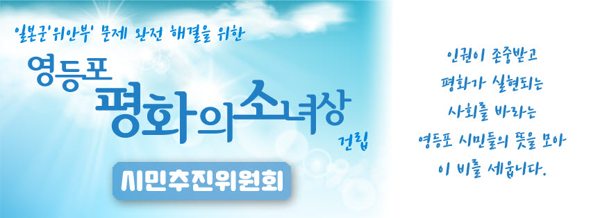 영등포 평화의 소녀상 건립추진 위원회는 지난 1월 15일(화) 영등포아트홀 2층 전시실에서 발족하였고, 오는 8월까지 평화의 소녀상 건립기금을 모집합니다.