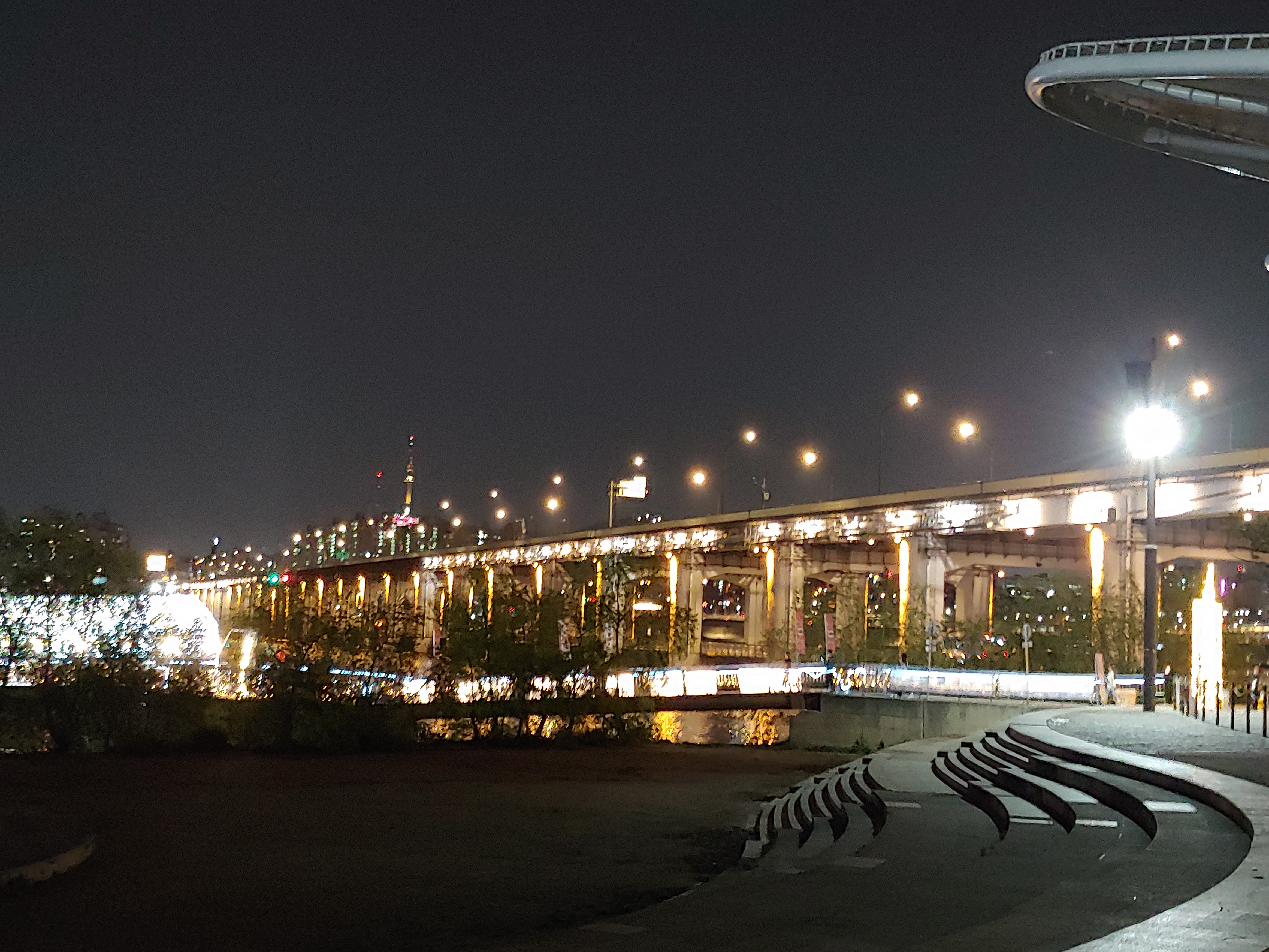 1층은 홍수가 났을 때 물이 잠기도록 설계된 그 유명한 잠수교이고, 2층은 반포대교라고 불려 하나의 다리에 두 개의 이름으로 불리는 곳이기도 하죠.