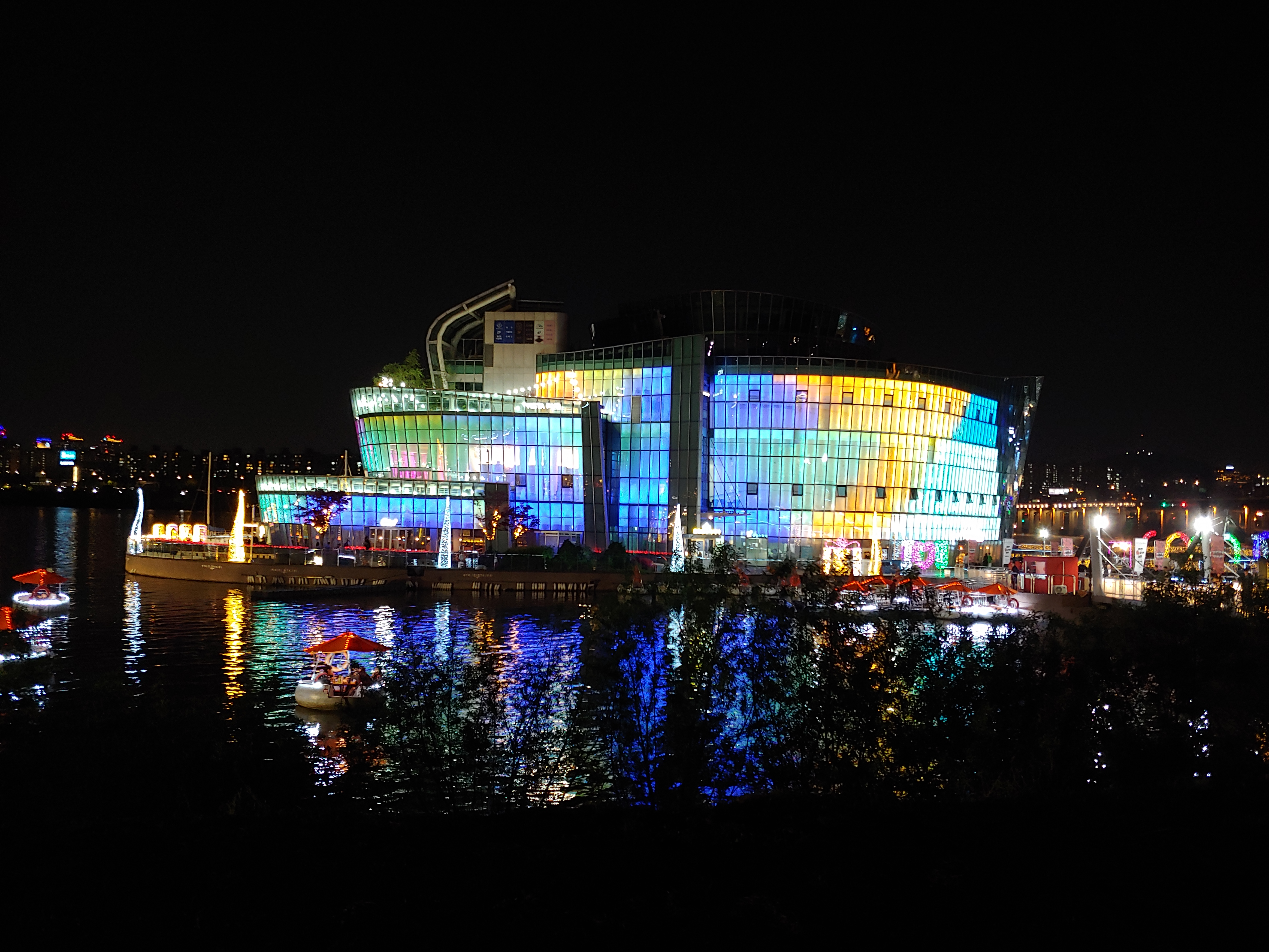 세빛둥둥섬 가빛섬의 조명을 슬라이드로 구경해 보세요.