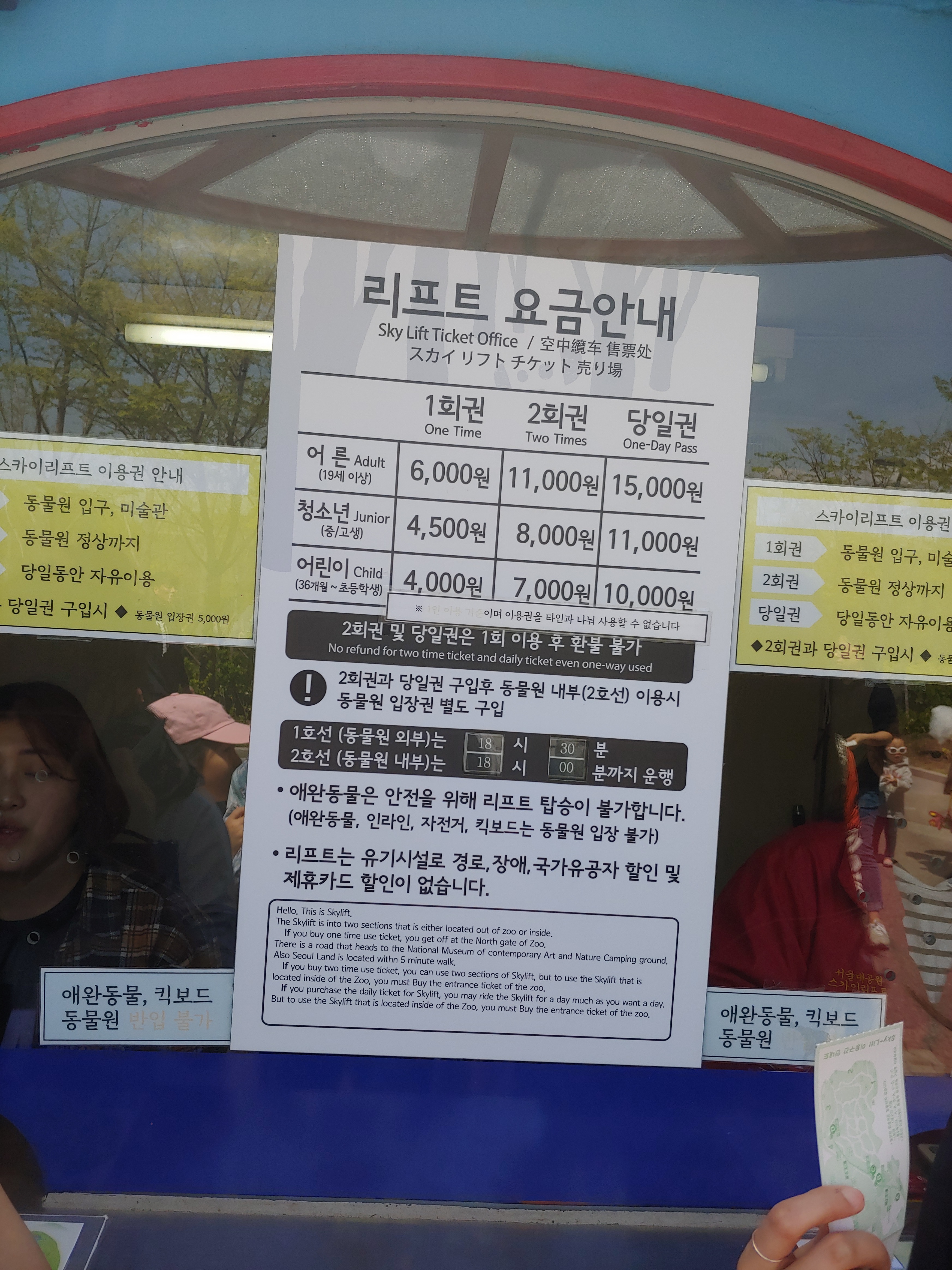 우리는 동물원 입구까지 가는 1회권 스카이리프트를 끊어서 탑승했습니다.