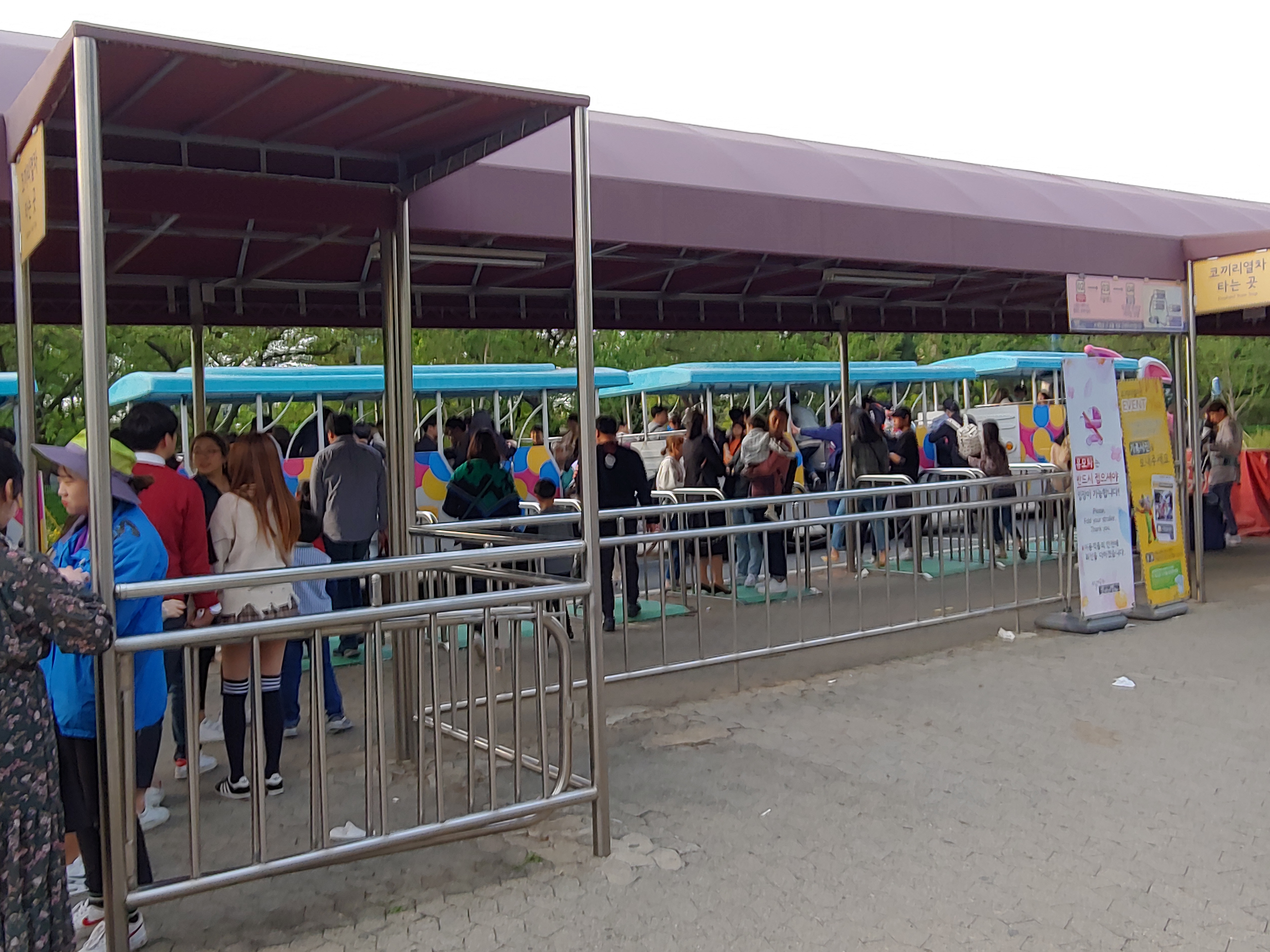 서울대공원 마감시간이라 코끼리열차를 타려는 분들로 가득한데 금세 오기때문에 많은 시간을 기다리지 않아도 됩니다.