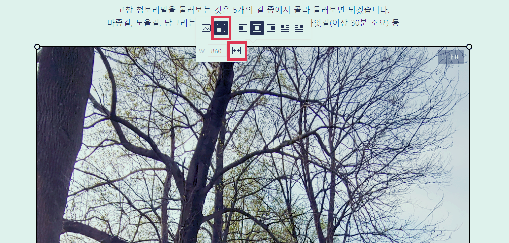 이번에 사진사이즈가 과도하게 커 보이는 문제를 해결하면서 포스팅 편집모드에서 누운(세로로 찍은) 사진을 클릭 후 '최대크기'를 선택하고, 저장하고 빠져나와서 보니 편집화면에 보이는 모습 그대로 표시가 됩니다.