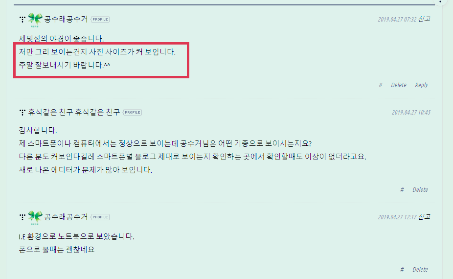 그중에서 어느 순간 블로그 이웃분들이 익스플로러에서 사진이 사이즈에 만지 않게 과도하게 크게 나온다는 지적이 있더라고요.