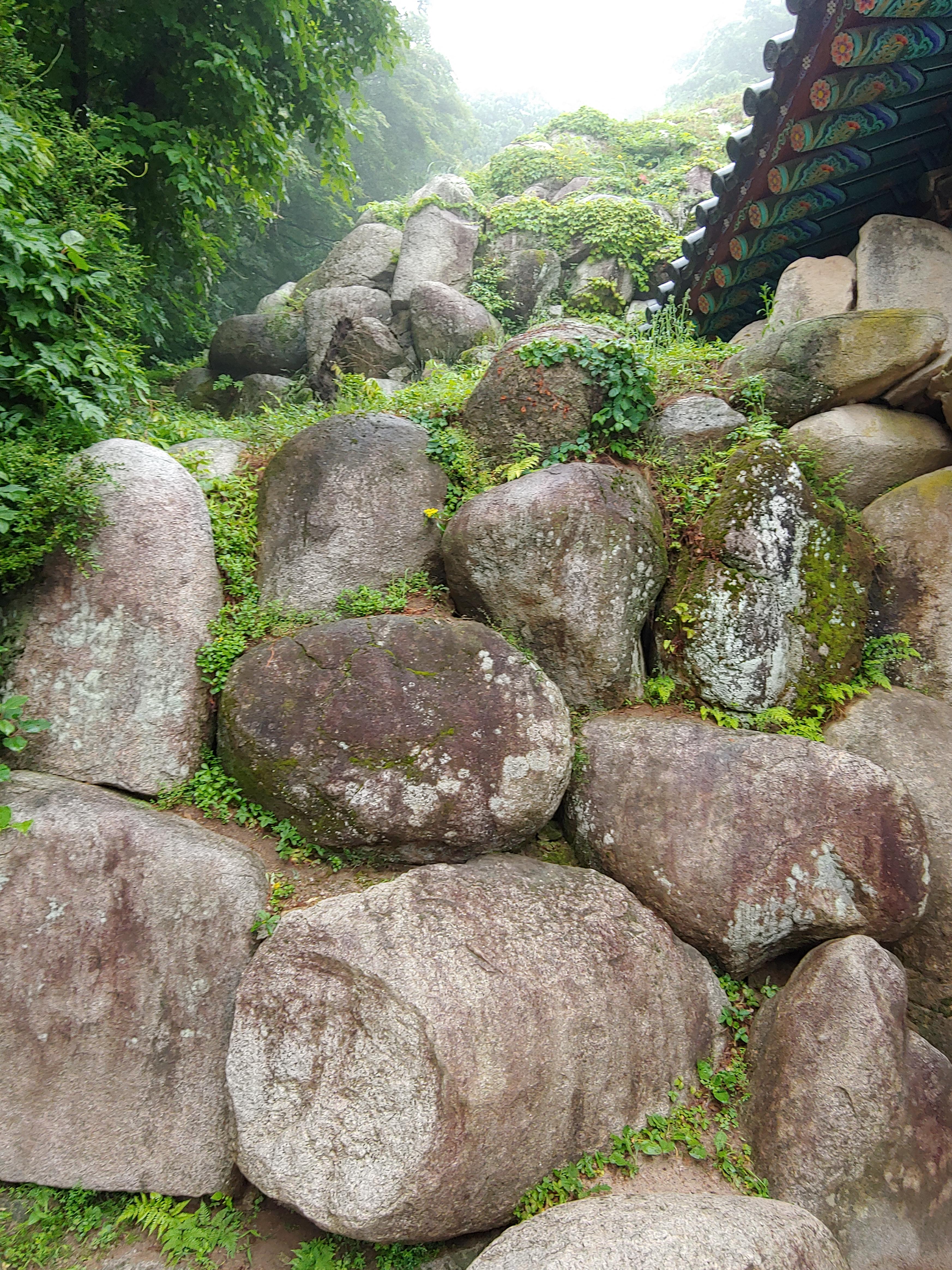 그리고 원래의 돌덩이들은 좌우로 그대로 있고, 한쪽엔 무너져 공사 중에 있더라고요.