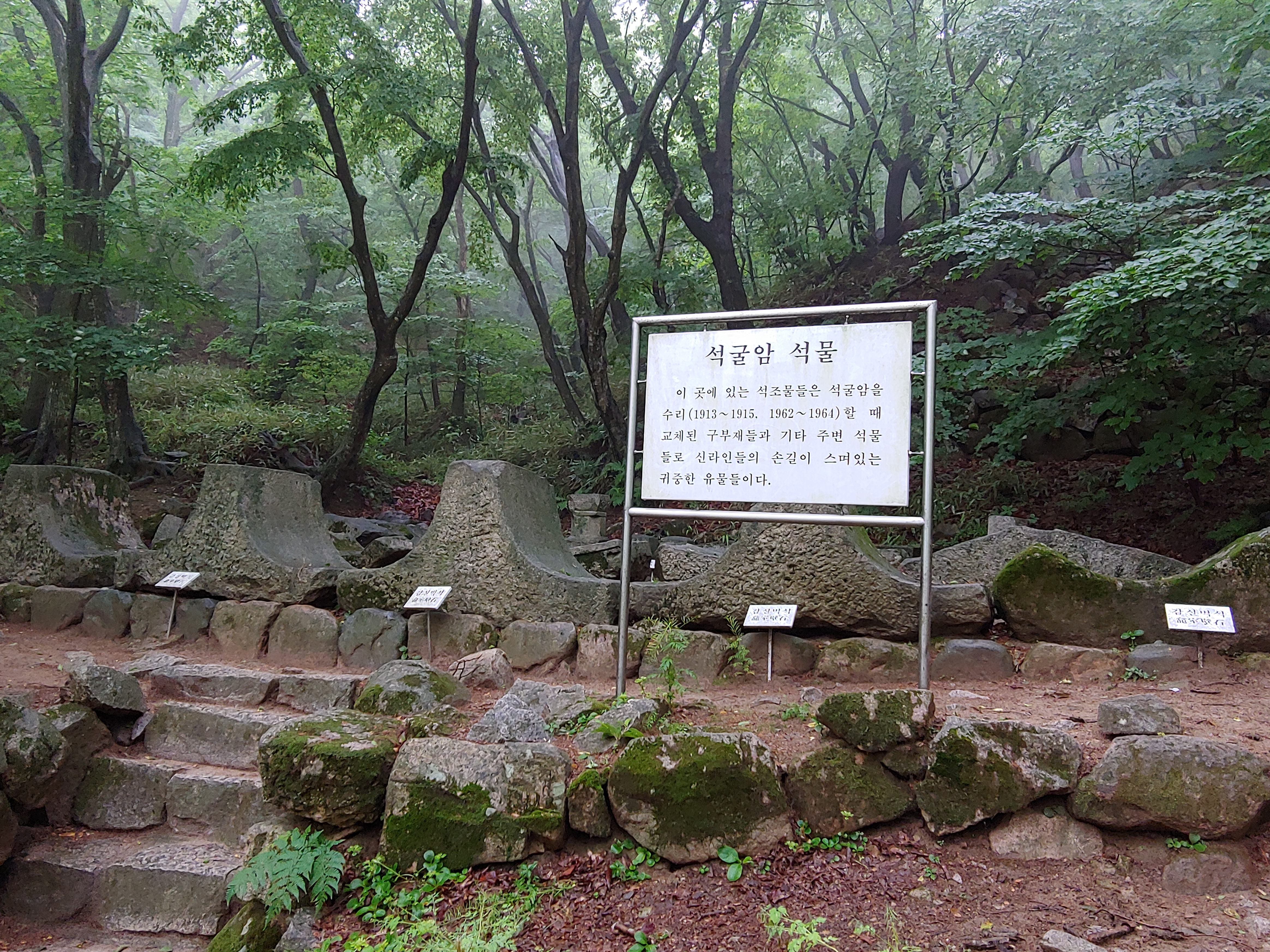 이곳의 석조물들은 석굴암을 수리(1913~1915, 1962~1964)할 때 교체된 구부재들, 기타 주변 석물들로 신라인들의 손길이 스며든 유물들이라고 합니다.