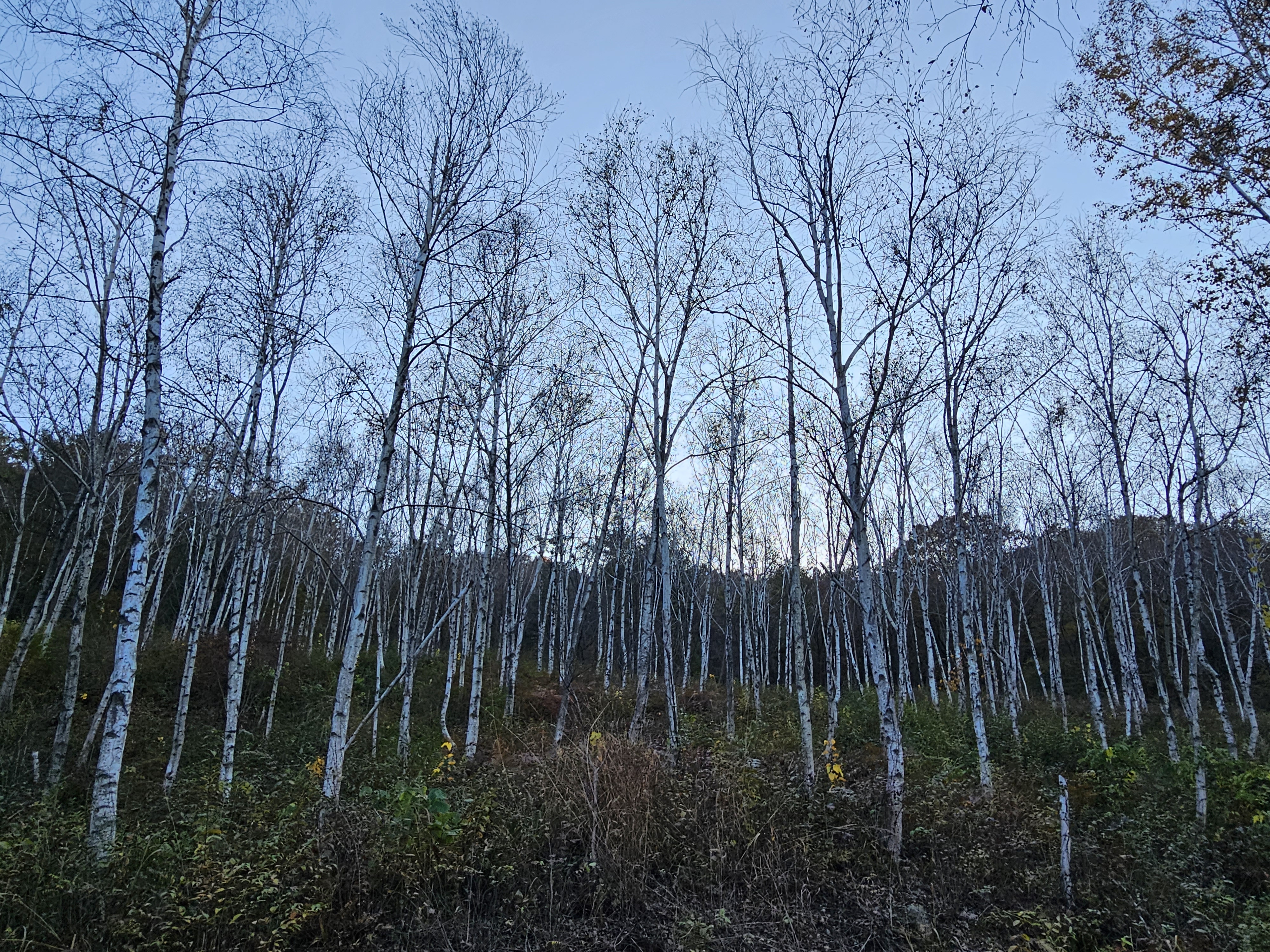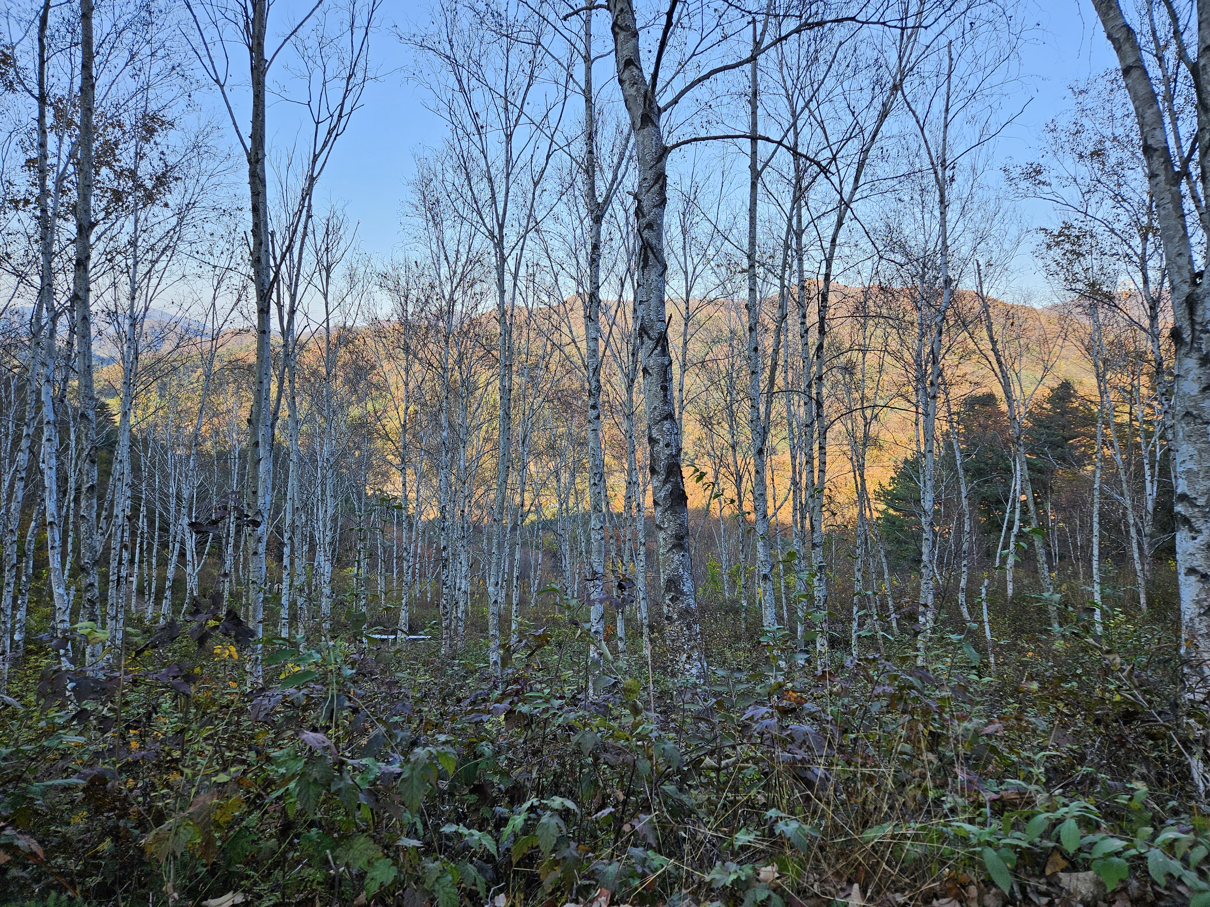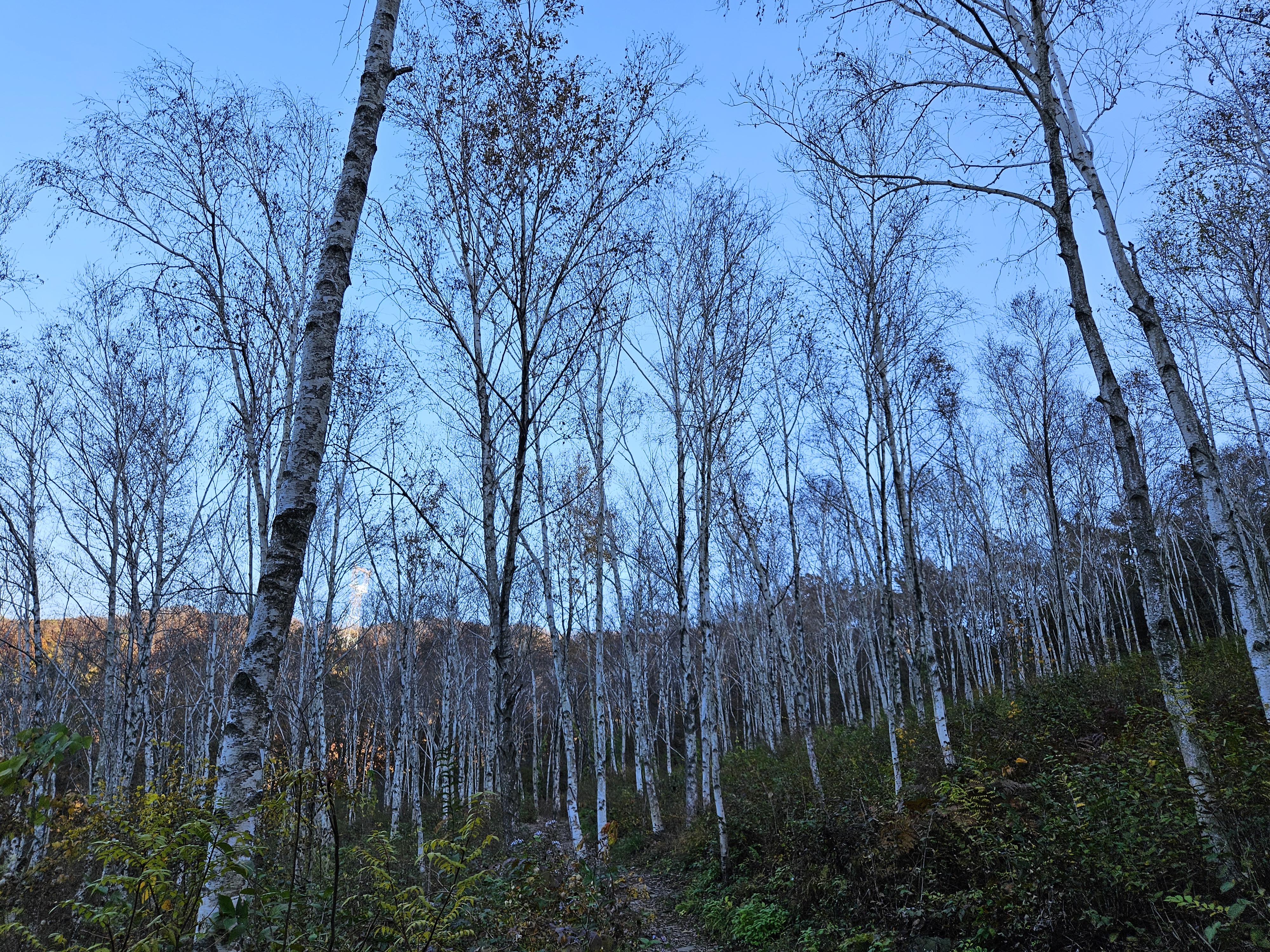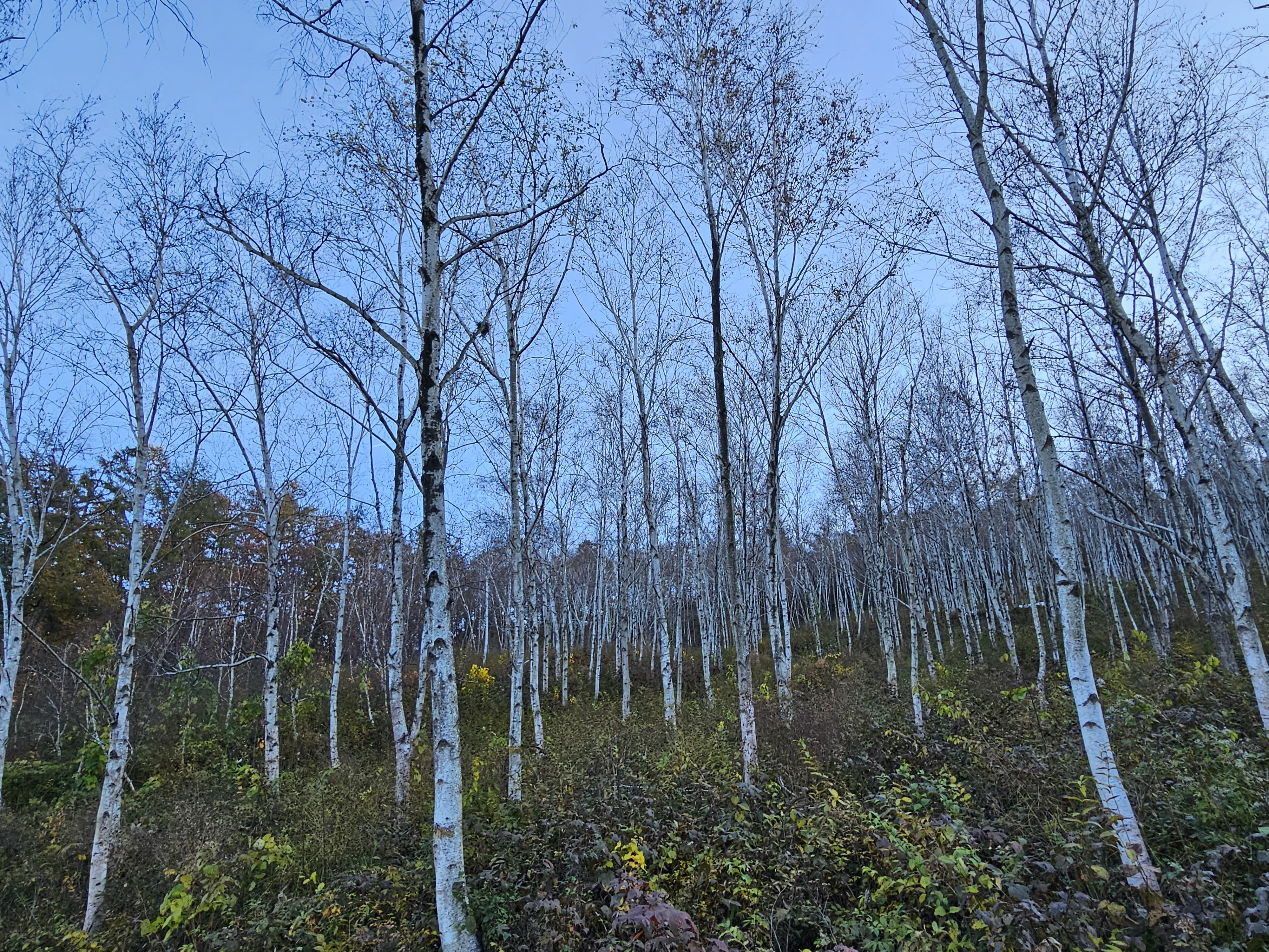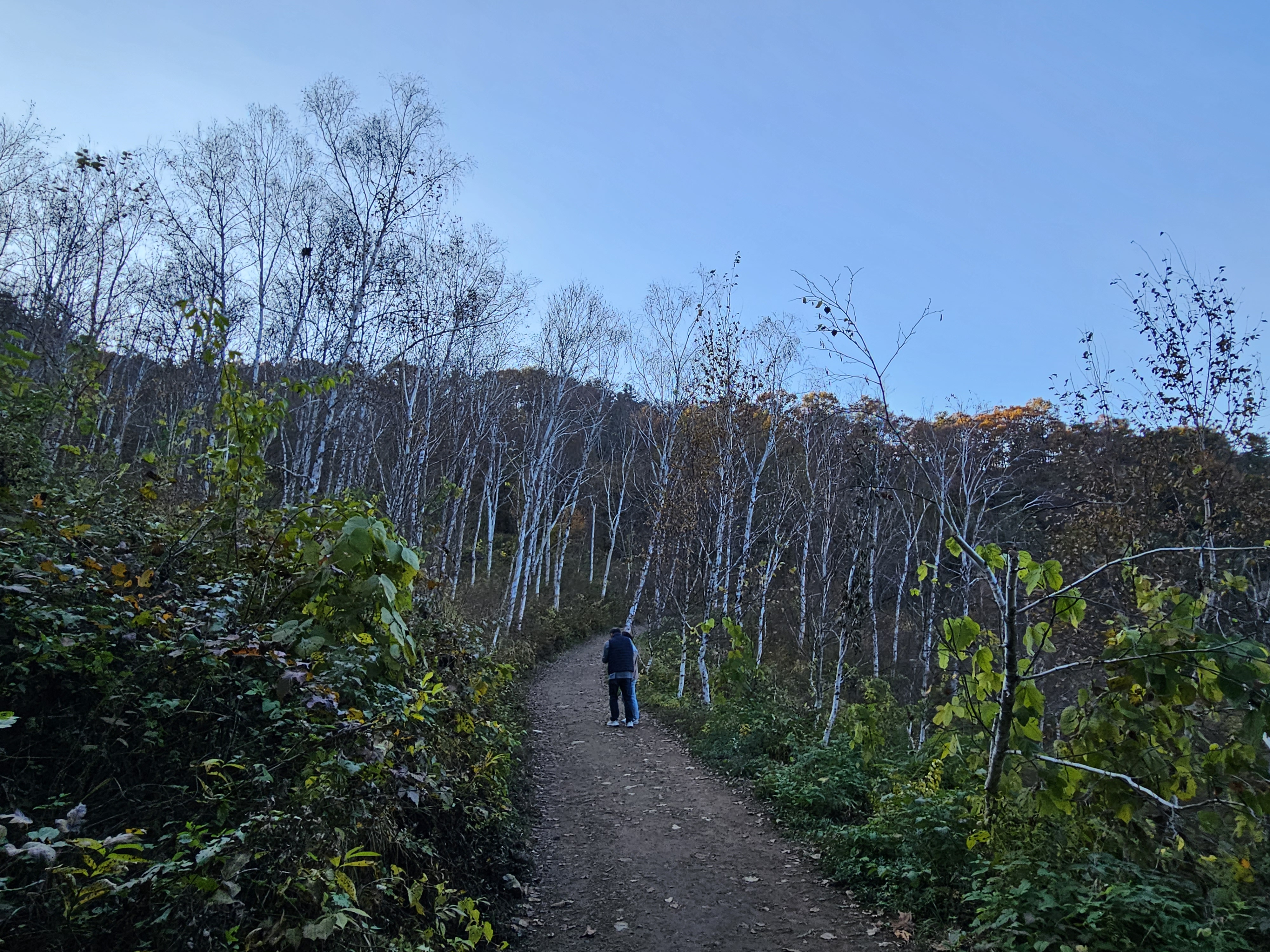 참나무숲에서 좌측 언덕을 따라 올라가면 아름다운 자작나무숲이 나옵니다.