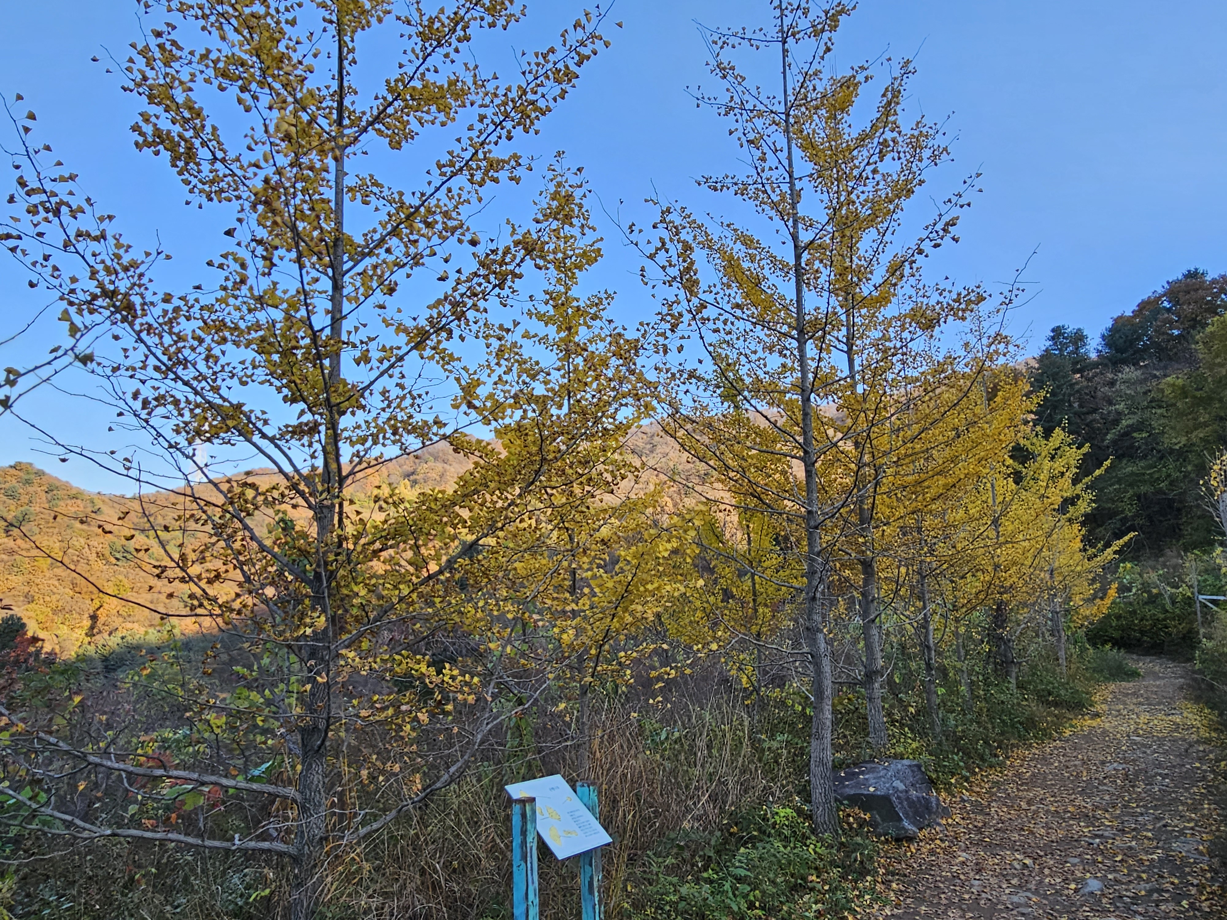 이곳의 은행나무는 조성한 지 얼마 되지 않은 것 같습니다.